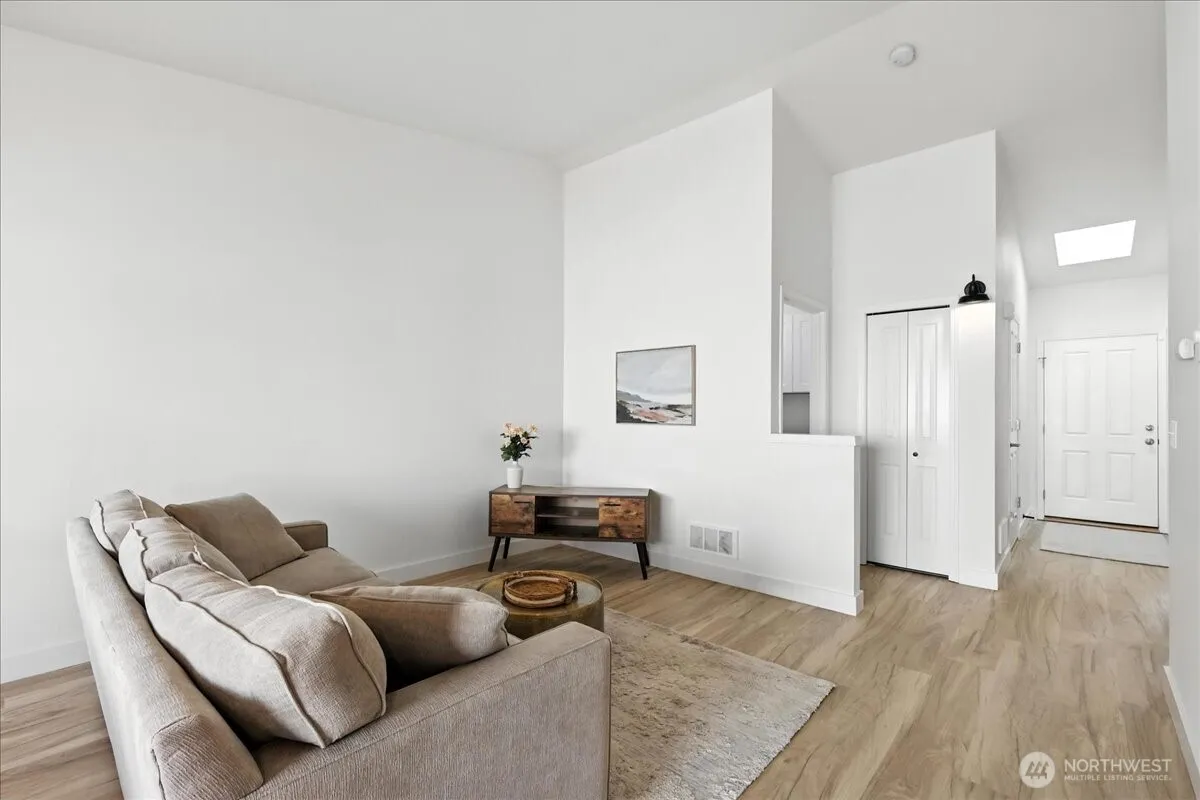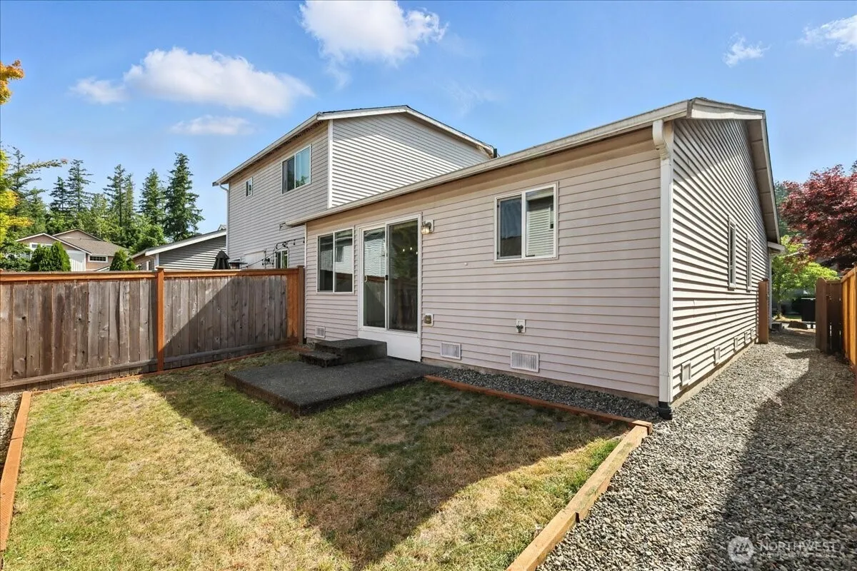 Step into this beautifully renovated rambler nestled in the highly sought-after Glacier Valley community. With a bright and airy open-concept layout, this home is flooded with natural light and offers an easy flow perfect for both everyday living and entertaining. Enjoy soaring vaulted ceilings, two generously sized bedrooms, and a stylish interior featuring all new flooring, trim, and fresh paint throughout. The fully fenced backyard is low-maintenance and includes a private patio—ideal for relaxing or entertainment. Located just minutes from scenic trails, local parks, shopping, and dining, this home combines comfort and convenience. All this in the award-winning Tahoma School District with a minimal HOA.