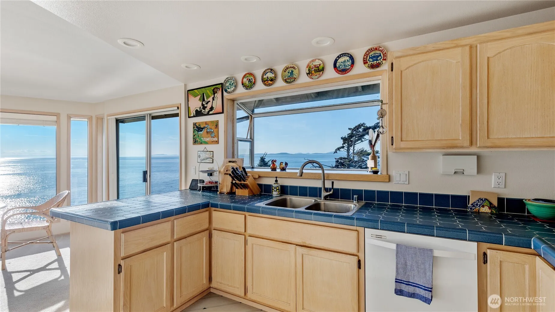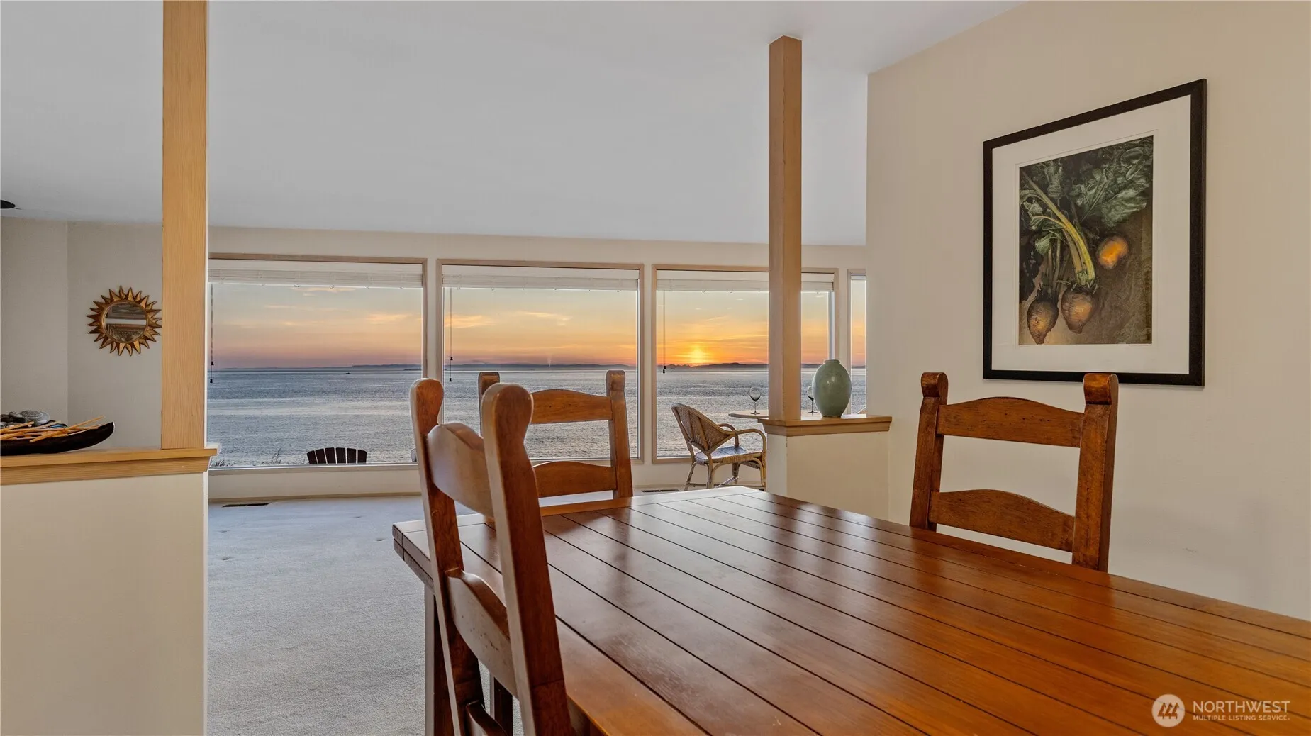 Bask in the beauty of single-level living with sweeping water views that steal the show. Floor-to-ceiling windows in the living room flood the space with light and frame sunsets that feel like a painting. Wake up to the sound of the waves and step through the sliding glass door from the primary suite onto your private deck. Surrounded by mature landscaping and tucked on a peaceful waterfront lot, this home is made for quiet mornings, golden hour dinners, and soaking in the view for years to come.