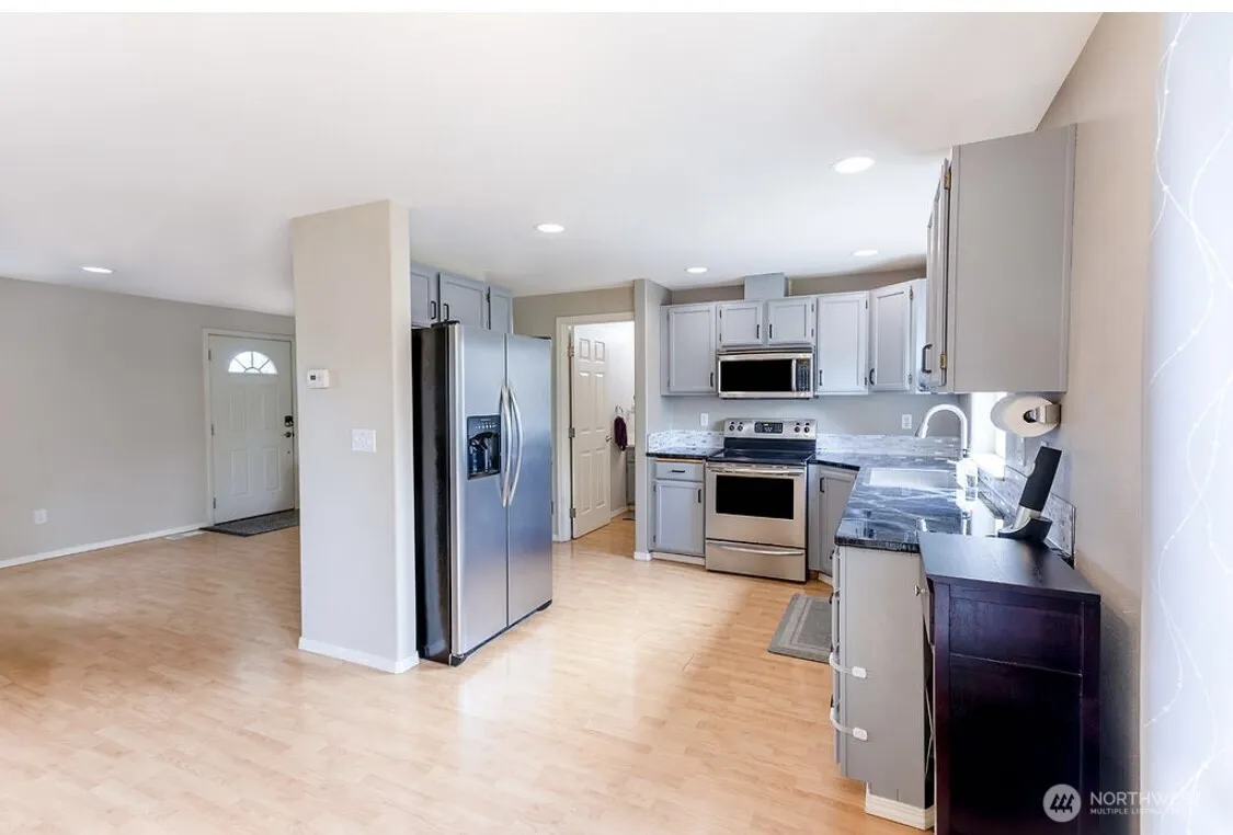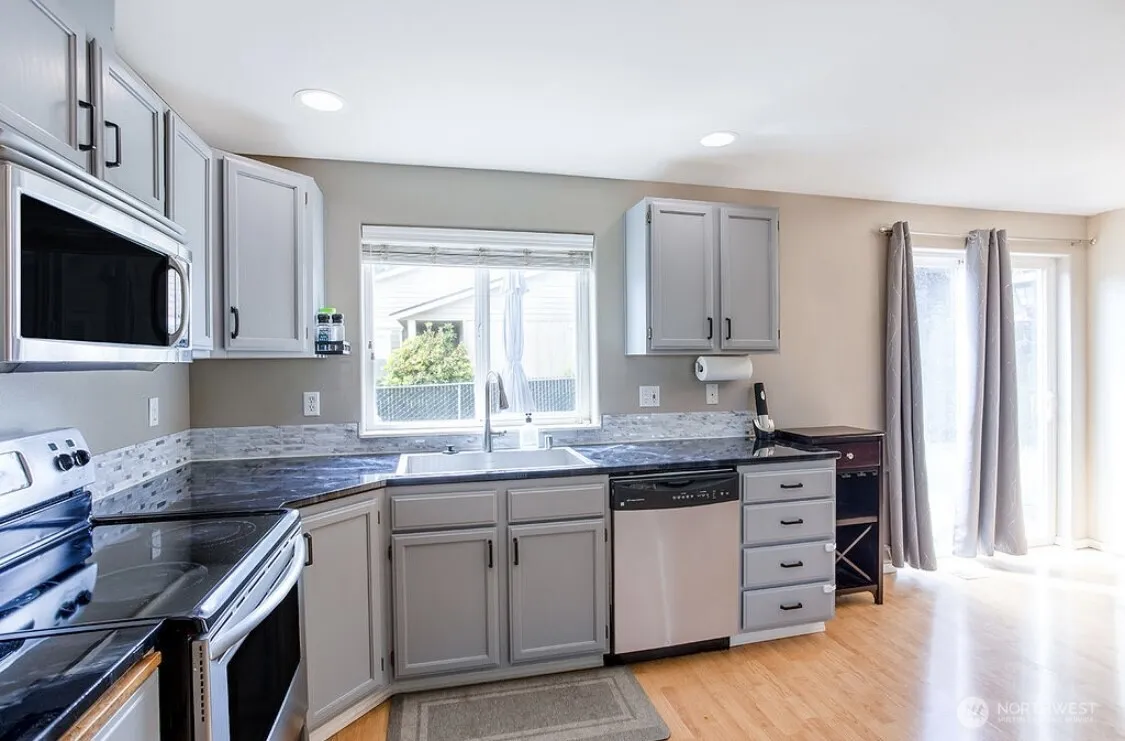MOTIVATED SELLER! Natural light illuminates the updated kitchen and dining area. Soak up the sun on the large deck in the fully fenced spacious backyard with a designated spot to BBQ. End the evenings gathered around the bonfire or plug in your own hot tub on the concrete patio. Plenty of room for parking in the 2-car garage and the long driveway. Upstairs are 3 generous sized bedrooms with a full bathroom that connects to the primary bedroom. Beautiful home in a cul-de-sac conveniently located near I-5, grocery stores, restaurants and Big Scoop Ice Cream.