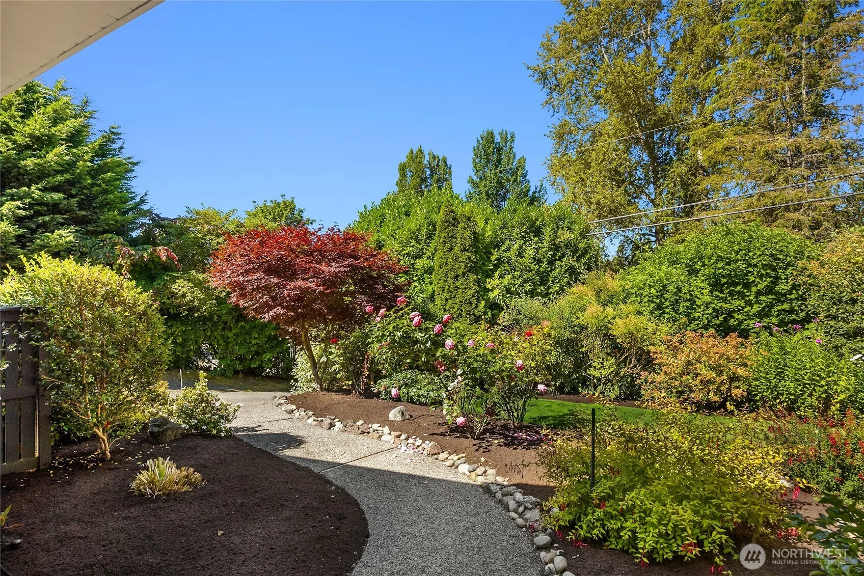 Stunning mid-century modern gem—light-filled, one-level retreat in a serene, close-in location. Renovated in 2015 by Peter Brachvogel, architect and executed by Carley Construction, this home features vaulted ceilings with car decking, skylights, and walls of windows and sliding doors providing a very open feeling. Sleek white-on-white kitchen with quartz counters and high-end appliances, opens to living room, dining room and inviting patio. Expansive primary suite with walk-in closet and luxurious bath, walk-in shower, and dual-sink vanity. Two more bedrooms share a skylit full bath. Maple floors, large laundry, mature landscaping with raised beds, 17-zone irrigation, and abundant storage inside and out. Just minutes to Winslow and ferry!