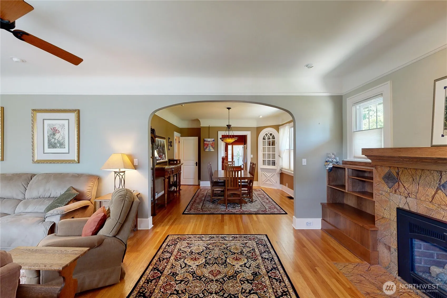 Craftsman Home that is move in ready with 3+ bedrooms and 3 bathrooms. Beautiful hardwood floors in living & dining rooms. Living room has a lopi gas insert in fireplace. Chef’s kitchen with 4 gas burner Viking stove, granite countertops, and a breakfast nook. Primary bedroom has a spacious walk-in closet, and connected bathroom with large walk-in shower. Main bathroom has tub/shower, with tiled wall surround. Basement has 3rd bedroom with egress window, and connected sleeping room without egress window. Laundry room has washer & dryer, sink, folding area, & tiled floor. Basement bathroom has tiled floor & corner shower. New heatpump installed June 2022. On demand Navien hot water heater. Covered front and back porches. Single det. garage.