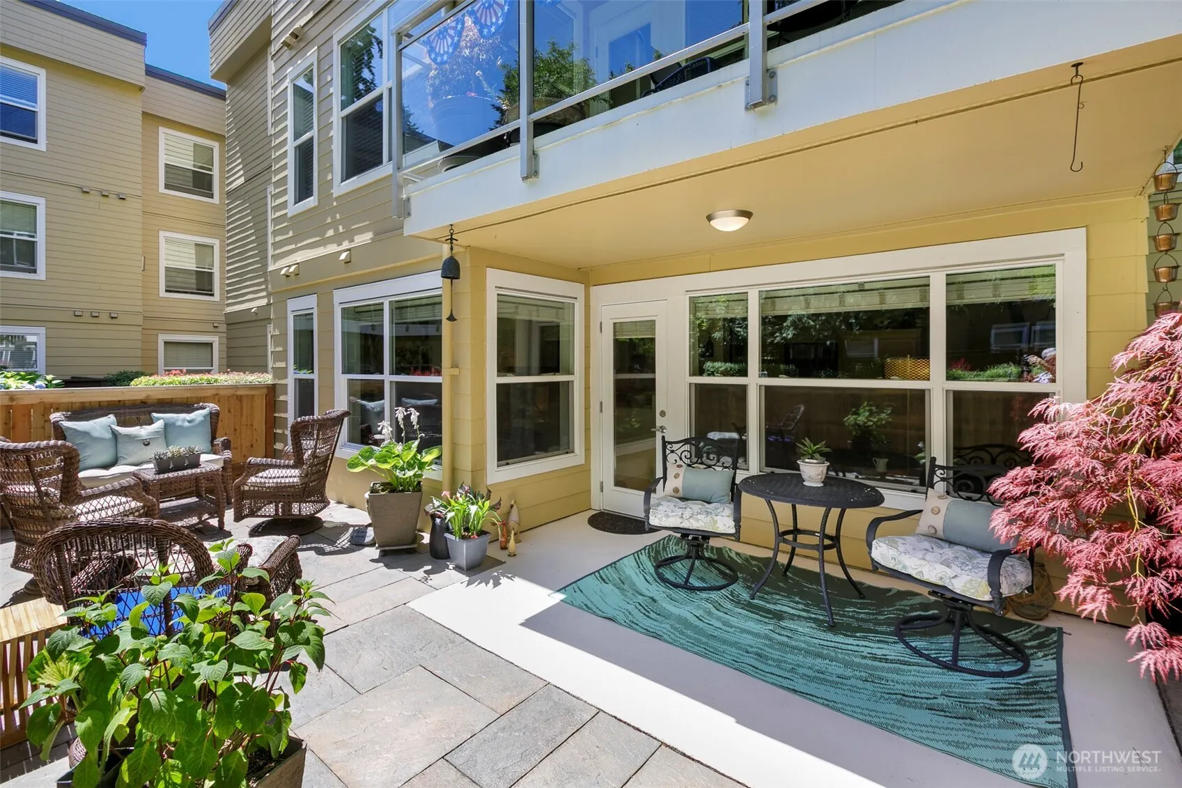 Escape to the quiet, secret Sequoyah complex, hidden on this lush hilltop. Rare three bedroom ground floor unit! Enter past waterfalls and trails to the enormous, private patio, great for entertaining or as a personal retreat. Great room concept with cozy fireplace, open kitchen (granite countertops) and dinning alcove. Spacious primary ensuite with walkin closet. Two other bedrooms for guests and office.Separate laundry room with extra storage. 2 designated parking spaces. This is a resort like community with pool, clubhouse and gym. Close to all of Edmonds’ village lifestyle.