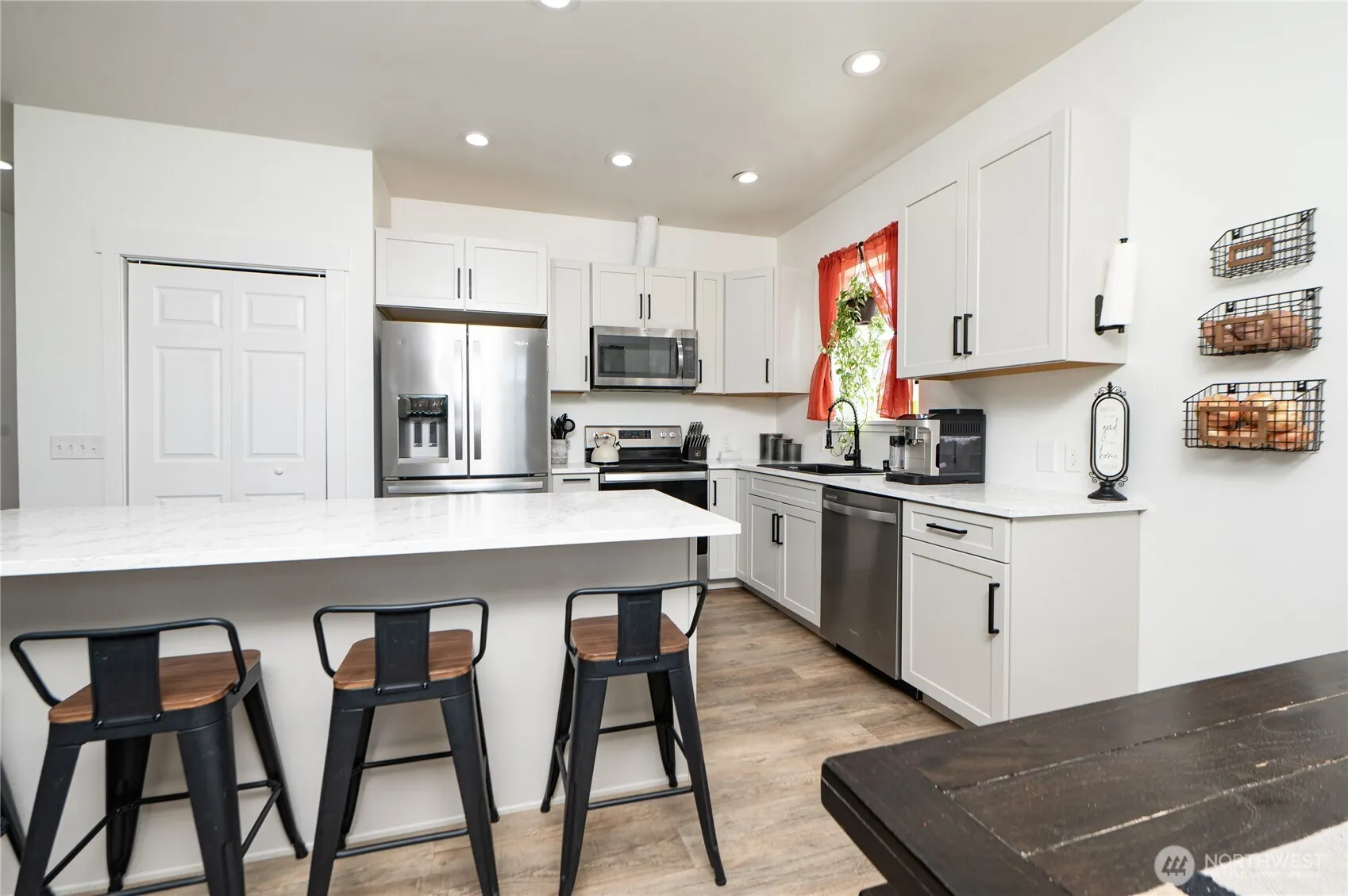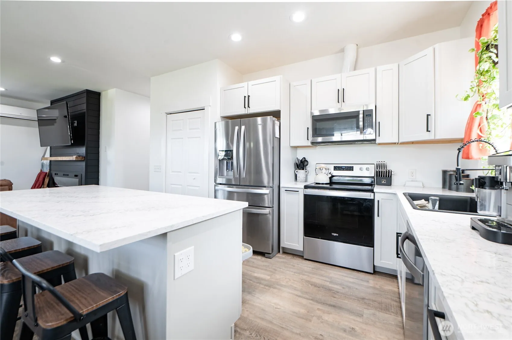 Charming and Affordable Living in Sumas! Welcome to this beautifully maintained 3 bedrooms, 1.75 bath home offering 1,250 sqft of comfortable living space. The open-concept kitchen features stainless steel appliances and flows into a cozy living room with a stunning fireplace – perfect for relaxing or entertaining. The spacious primary suite includes a walk-in closet and private ensuite. A convenient mudroom adds a 3/4 bath for flexibility. Enjoy the fully fenced backyard with breathtaking Mt. Baker views, a fire pit area, raised planter beds, and a patio ideal for entertaining. Bonus: the powered patio shed adds extra utility! All within walking distance to schools and shopping in the welcoming, affordable community of Sumas.