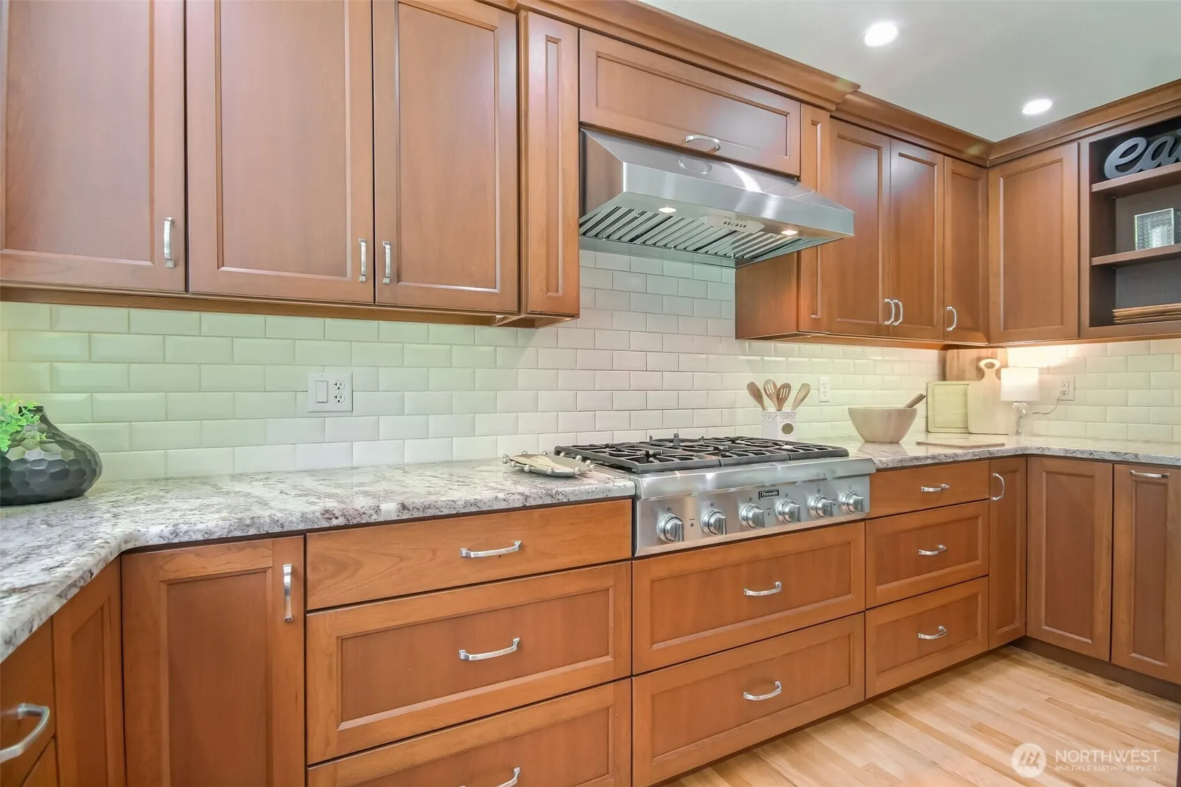 This beautifully updated 3 bed, 2.5 bath home features gleaming hardwood floors, a chef’s kitchen with custom cherry cabinets and stainless-steel appliances, a formal dining area, living room and entry with vaulted ceilings, a family room with custom built-ins around a gas fireplace, and fresh exterior paint. The spacious primary suite has vaulted ceilings and a five-piece ensuite with a jetted tub, heated floors, and a walk-in closet. Enjoy outdoor living in the landscaped, fully fenced backyard with a firepit area and private hot tub.