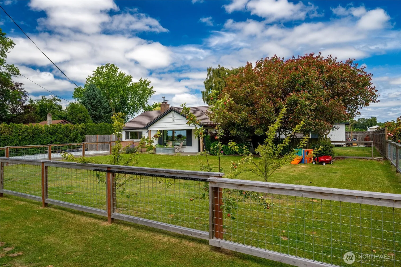 Enjoy peaceful living and breathtaking views of the Olympic Mountains and surrounding farmland in this beautifully maintained rambler. Light, bright, and move-in ready, this home features an updated kitchen with shaker cabinets, marble countertops, and stainless-steel appliances. Updated flooring adds warmth and style throughout the open, airy layout. Built to last with durable concrete wall construction, a long-lasting metal roof, and efficient radiant heat flooring, this home offers comfort and quality year-round Step outside to a spacious, fully fenced yard—perfect for gardening, entertaining & relaxing room for RV parking. Don’t miss the adorable picture-perfect chicken coop, ready for your feathered friends!
