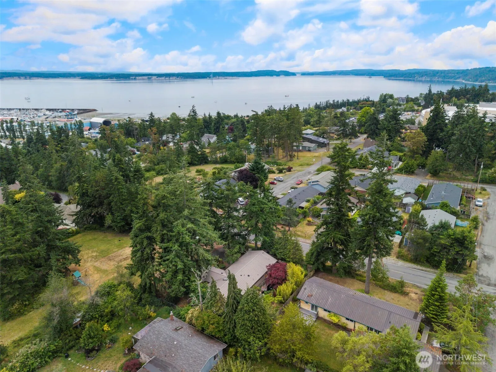 Midcentury meets Northwest Contemporary in this in-town private oasis. Calming tones and real materials greet you when you enter the home. Gorgeous windows and clear grain fir trims the windows and doors. Turn around and look out the living room windows–you’ll notice the view of the iconic clocktower on the courthouse and Port Townsend bay. The kitchen is an absolute dream for the true cook – it boasts two dishwashers and a stunning 36″ Viking range. The layout is simple and sprawling – this single story home is easy to age in place. One bathroom has a no-curb walk-in shower. The other bathroom has an extra deep double bathtub. The backyard is secluded with a pond and includes super sunny spot for potential raised beds.