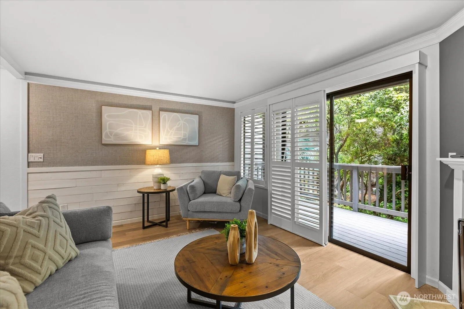 Experience refined living in this updated townhome, featuring designer accents, located in coveted Richmond Beach. 2 BR, 1.5 BA home w/multiple decks overlooking a tranquil setting. Inside you’ll find a spacious LR w/hardwoods, gas FP, seamlessly connected to an open dining area & kitchen, ideal for culinary enthusiasts, equipped w/SS appliances, Shaker cabinets, luxurious quartz slab counters add a sleek & modern touch. You’ll love the serene primary BR w/vaulted ceilings. Don’t miss the generous storage space in the attached garage, ideal for workout, home office, or? Minutes from Saltwater Park on Puget Sound for stunning sunset views over the Olympics & beachfront walks. All a short distance from the North Shoreline Light Rail station.