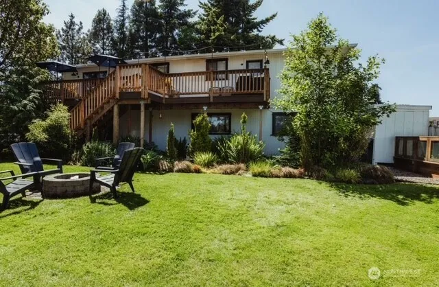 WELCOME HOME TO THIS SPACIOUS 5BD 3BA GEM NESTLED ON 1/3 ACRE ON A QUIET CUL DE SAC. This home is beautifully updated with many custom features. Upstairs you will find the master suite with updated bathroom, large closet, and a Dutch door leading out to the deck. There are also two spacious rooms, a bathroom, an upgraded kitchen, a living room with a cozy gas fireplace, and a dining room. A pair of French doors off the dining room leads to the back deck where you can relax, entertain, and take in the views. Downstairs you will find an expansive master bedroom complete with a dry sauna and gas fireplace. There is also a bathroom, laundry room with pantry, and another bedroom. The front and backyard are beautifully landscaped.