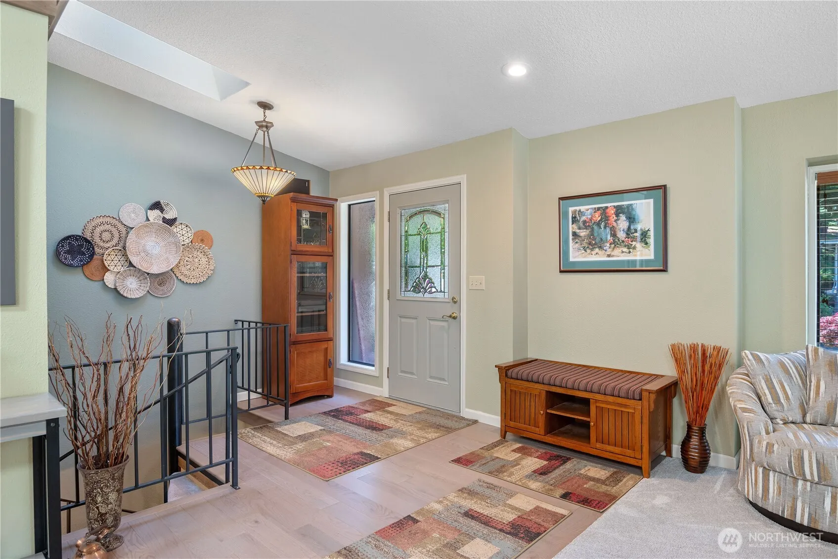 Meticulously maintained home in a quiet neighborhood. This home is a 3 bedroom 2 bath home. You will love the warm hardwoods throughout. The living room has a vaulted ceiling and sky light to welcome the natural light. This kitchen is beautiful and new with all soft close cabinets, stone counters and tile backsplash and black stainless appliances. Primary bedroom with jetted tub and walk in shower. Down stairs you have a familyroom with a pellet stove and wet bar for all those gatherings. You have your 2nd and 3rd bedroom plus another bath. Outside you have all cedar siding, an upper deck for all your summer get togethers and the lower deck with a hot tub to enjoy. All of this framed in trees and privacy. And room for for your RV.