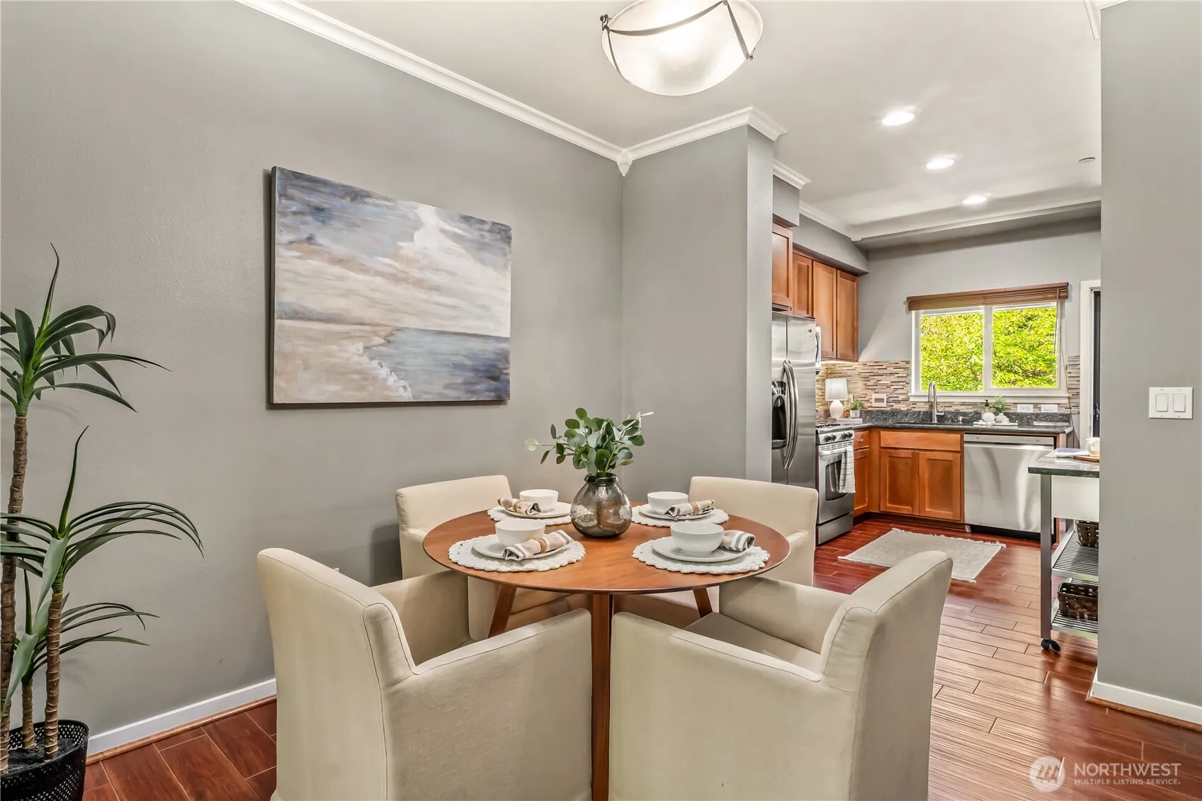 Welcome to The Camden at Harbour Pointe! Set in a town square and backing up to a serene greenbelt, this townhome offers privacy and a peaceful setting. Main floor living has vaulted ceilings and crown molding, gas fireplace, lots of windows & a private deck overlooking the greenbelt. Enjoy the large dining area & an open kitchen with granite countertops, SS appliances, built in work desk, moveable island & another deck off of the kitchen. Upstairs, two primary bedrooms, one with 3/4 bath & dual walk-in closets, the other w/full bath & walk-in closet. Full size W/D round out the upper floor. With the new carpet, this home is move-in ready. Mukilteo has so much to offer and only minutes from Paine Field. Turn your DREAM into this ADDRESS!