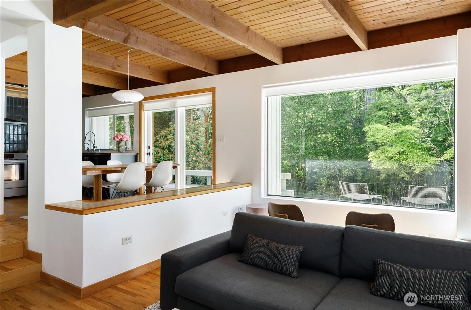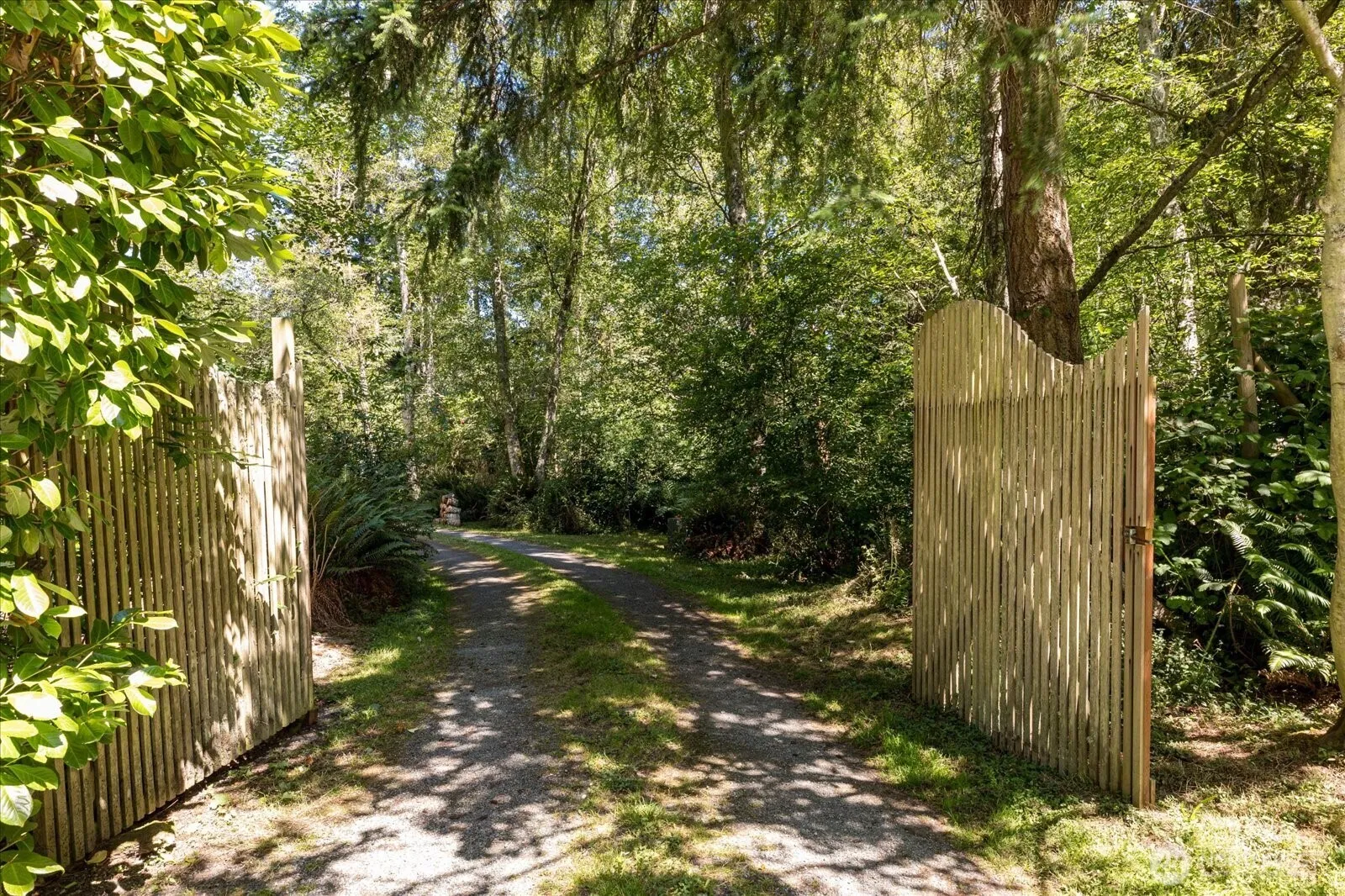 Discover your private 3-acre sanctuary. This nestled architectural home features soaring vaulted wood ceilings and expansive windows with stunning forested views from every room. Light, light and more light! The redesigned kitchen boasts sleek Bosch appliances and designer upgrades. Extra finished room could be used as an add’l bedroom. Brand new updates include: roof, refurbished deck, interlock switch, water heaters, LG washer/dryer, window treatments, interior/exterior paint, and septic tank (Aug 2025). Enjoy 40+ diverse, beautiful blooming trees in a low-maintenance landscape. Includes oversized carport, garage/shop, yard and wood shed, and fenced property with gate. Find peace and tranquility.