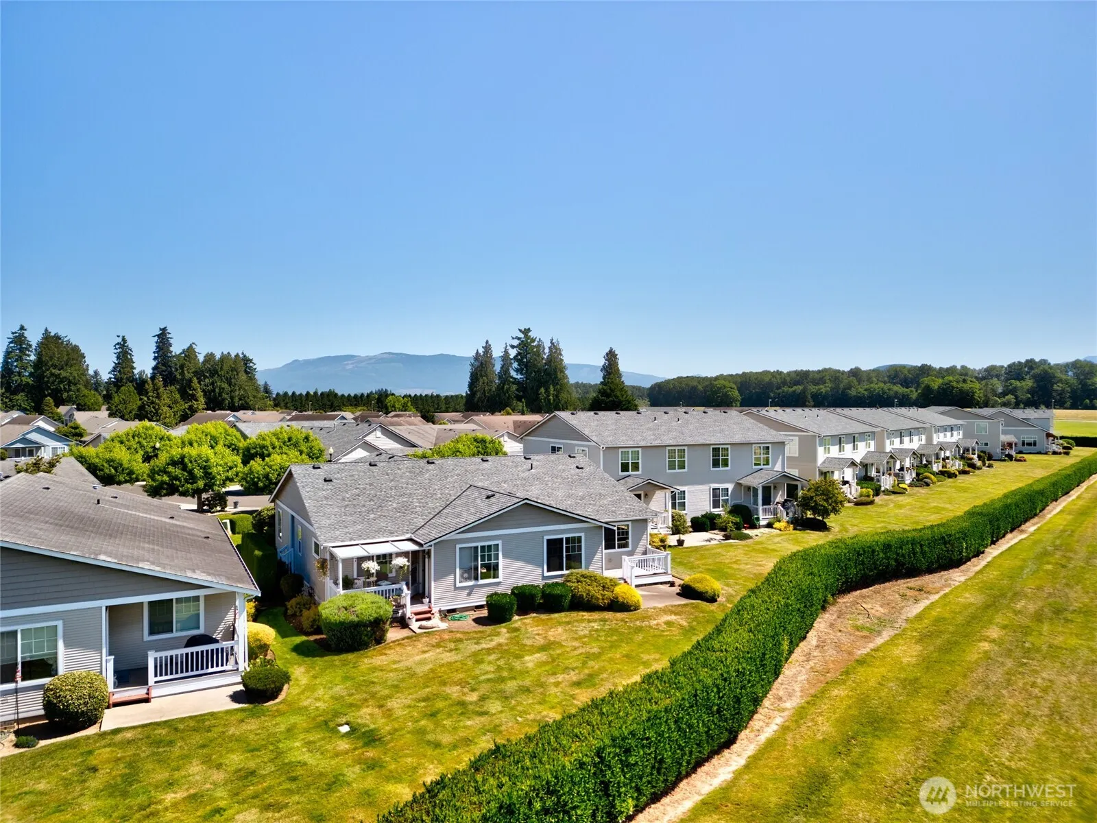 Welcome to easy living at Cedar Point! This beautifully maintained, move-in ready 2-bedroom, 2-bath condo is tucked in a peaceful 55+ community with no special assessments. Enjoy an end-unit location with a private entrance and lovely views of the park and surrounding mountains. The single-level layout is open and bright, with a spacious kitchen, breakfast bar, dining area, and sun-filled living space. The primary suite offers a walk-in closet and private bath. Additional highlights include a newer roof, private deck, laundry room, one-car garage, and access to community amenities like walking trails, a clubhouse, secure mailboxes, and RV parking. Close to shopping, medical services, and the Senior Center—this home has it all!