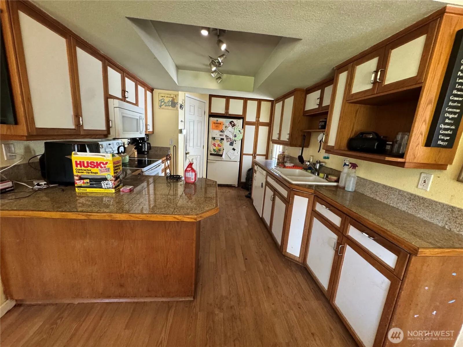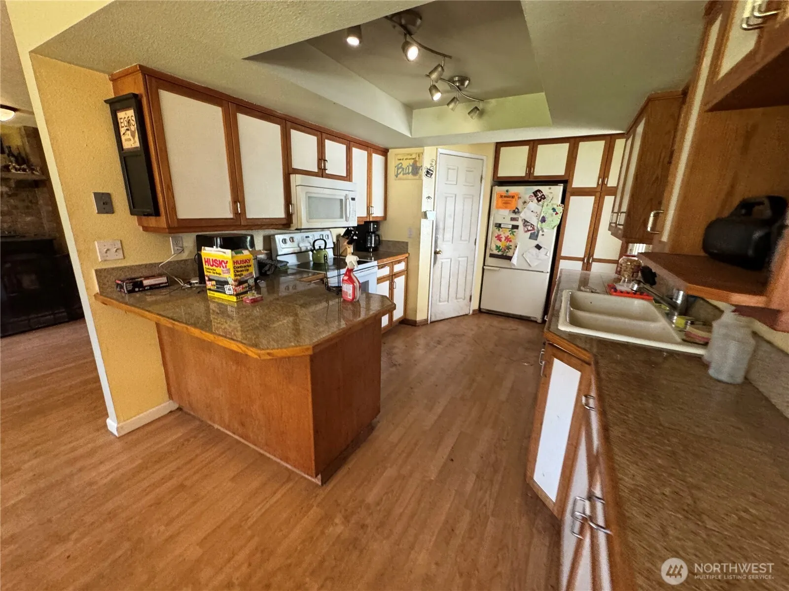 This home is just over 2000 sq ft and features 3 bedrooms, 2 baths, a bonus room on over half an acre. Kitchen has granite tile countertops, a pantry and ample cabinet and counter space. Upper level primary suite with 2 closets, large soaking tub & separate shower. Electric & plumbing was updated in 2008. Fruit trees and centrally located between Bonney Lake and Buckley