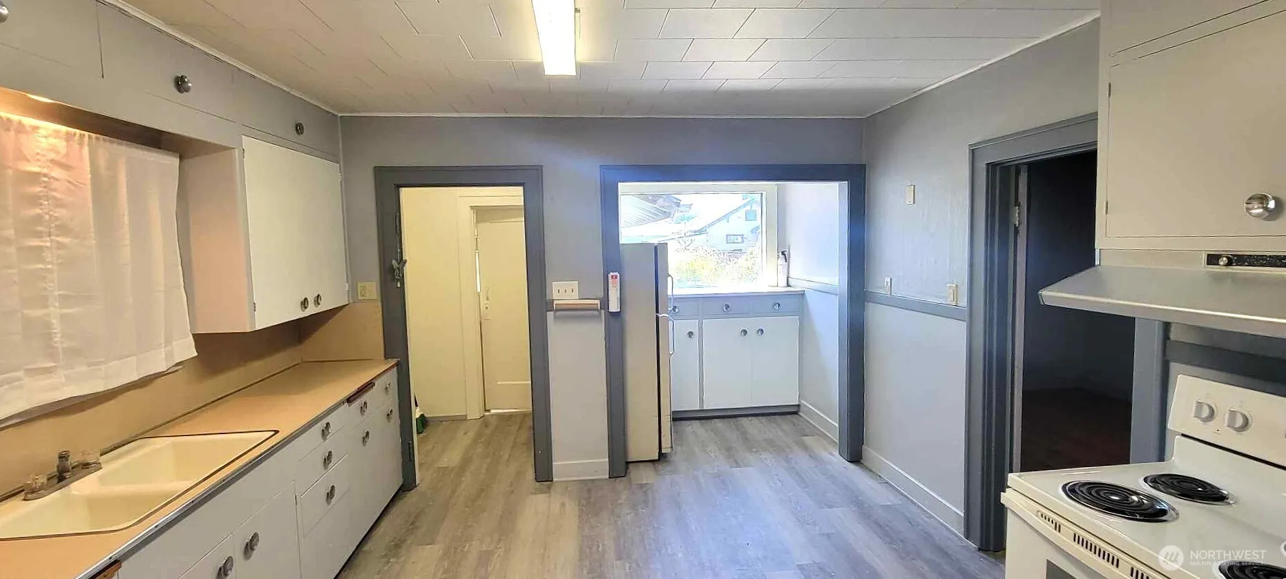 Cozy & Cute! Check out this two bedroom, one bath bungalow nestled in South Aberdeen! Located out of the flood plane, this home boasts a new front deck at the entry, original fir hardwood floors, with brand new laminate floor covering, fresh paint throughout, brand new vinyl windows, and an updated bathroom! The garage and carport are enormous, with room enough to park three vehicles, in tandem, and the gigantic lot that’s nearly fully fenced! It would make a great starter home, and has plenty of room to make improvements and capitalize on your investment!