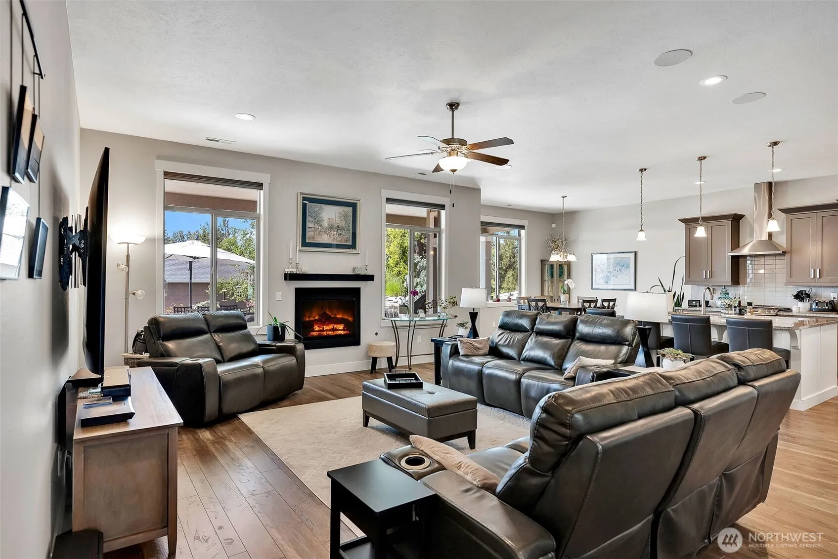 Experience comfort & style in this beautifully maintained 4BR/2BA home, thoughtfully designed for effortless living. Step outside to a professionally landscaped backyard oasis, complete w/a covered patio, terraced water feature, & private hot tub. Inside, the kitchen has granite countertops, a large island, pantry, under-cabinet lighting, stainless steel appliances, a gas cooktop, new refrigerator, built-in mw & electric wall oven. The huge living room has soaring 10-foot ceilings & a cozy gas fireplace. Retreat to the luxurious primary suite, featuring double granite sinks, a 4’x5′ tiled walk-in shower, soaking tub, & a generous walk-in closet. This home perfectly blends elegance & convenience in a serene, functional layout.