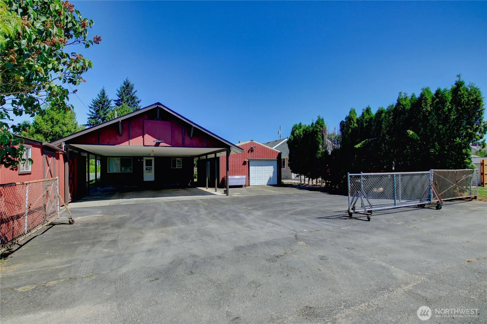 Craftsman charm in downtown Monroe! This 2-bedroom home with covered parking for 5 cars sits on a fully fenced lot with alley access and abundant off-street parking. Features include a bright kitchen with large dining area, cozy gas stove in living space, forced-air heat, and a covered front porch full of character. Detached oversized 1-car garage, 4-car carport, 2 sheds, and gated driveway. Continental-style 3/4 bath with direct bedroom access—formerly a full tub/shower. Clean, move-in ready, and close to schools, shops, and highways
