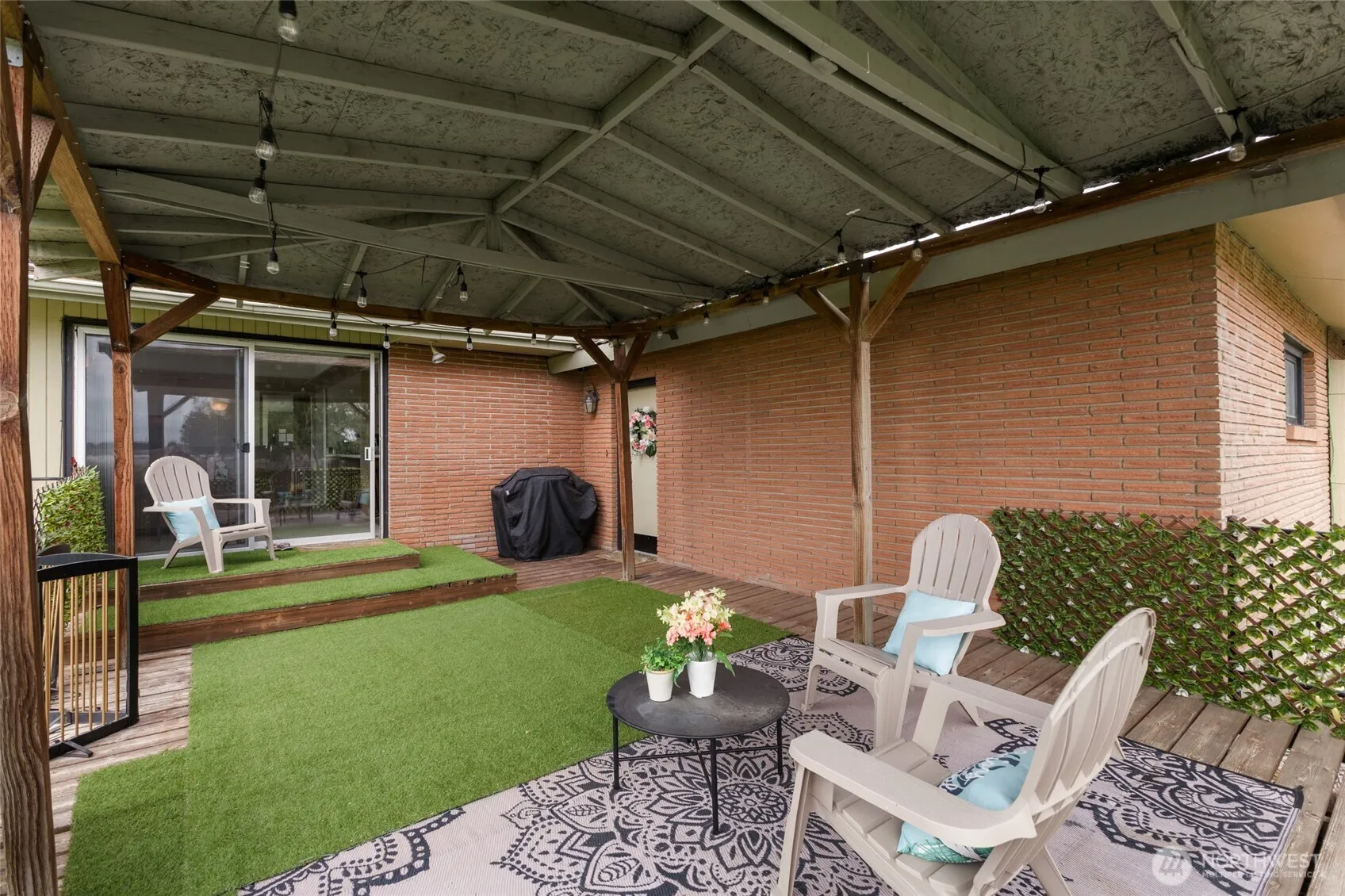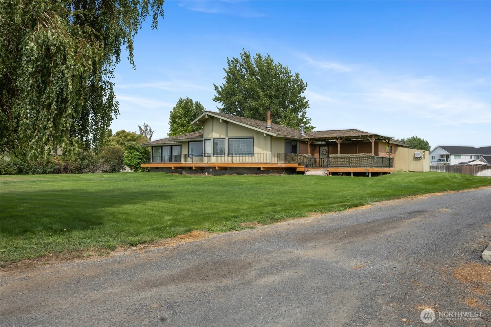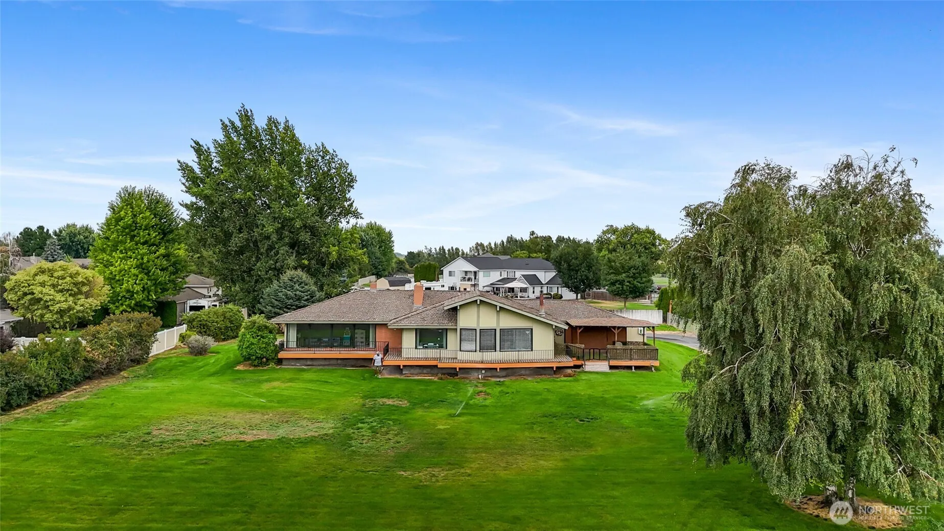 Charming Mid-Century Modern Home – 3 Bed, 2 Bath 2349 sq. ft. This beautifully maintained brick and wood mid-century modern home features 3 spacious bedrooms and 2 updated bathrooms. Situated on a generously sized lot with RV/boat parking and a private well supplying water to the home. Mature landscaping offers privacy and curb appeal. Inside, you’ll find updated flooring and fresh paint throughout, vaulted ceilings in every room, and two separate living areas perfect for entertaining. The kitchen boasts a large walk-in pantry with a beverage fridge. Comfort is ensured year-round with central heat and air.