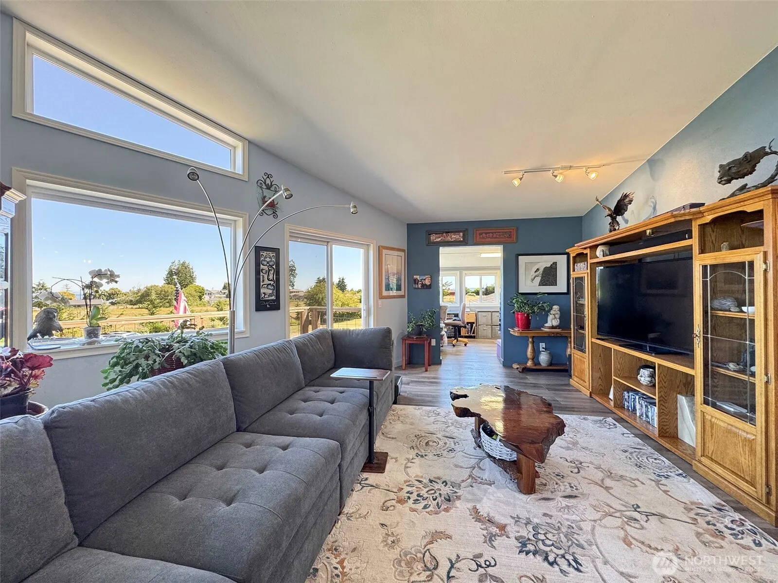 Beautifully remodeled home on 5 mostly private acres close to the water. New flooring, siding and updated kitchen with quartz counters and top flight appliances. Gorgeous remodeled bath off the primary with built-in sauna. The water and mountain views are outstanding–especially from the small third story observation room–what a great place for an office. The current large quilting room could be additional living space or another bedroom (3 Bedroom Septic). Property is fully fenced with 5 dividable acres to do with as you wish. Lovingly landscaped with some irrigation, two outbuildings (Unplumbed cottage & garden shed). Property includes fruit trees and garden areas as well as a seasonal pond. Located in a great neighborhood of fine homes.