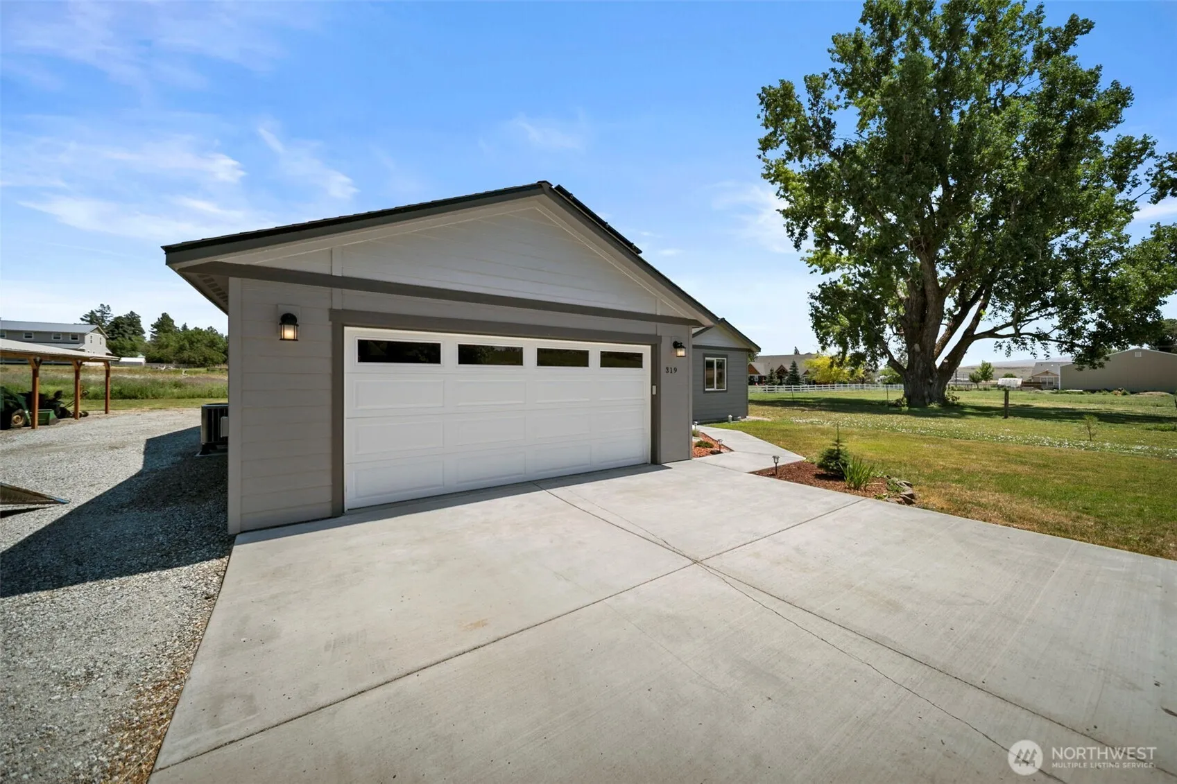 Beautifully maintained 3 bedroom, 2 bathroom home built in 2022. Sitting on a large, level lot, the property also includes a 30×30 fully insulated detached shop with 220 amp service, with a 30×12 attached awning. Additionally, there is a 16×10 garden shed and RV parking with water, power, and dump. Vaulted ceilings, quartz countertops throughout, and stainless steel appliances that stay with the home. The open kitchen features a center island—perfect for cooking, gathering, and entertaining. Step outside to a covered 16×12 patio off the kitchen, wired for a hot tub, ideal for year-round enjoyment. The home is equipped with upgraded solar panels for energy efficiency. A well-rounded home with space, function, and style.
