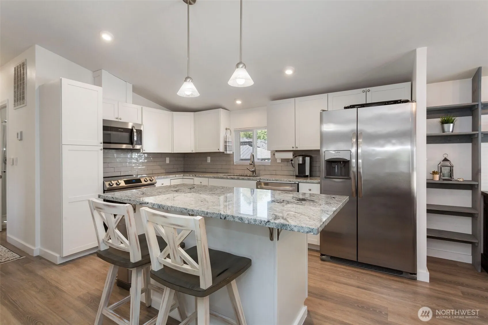 [ OPPORTUNITY AWAITS ] Perfect for a first-time buyer or downsizer, this wonderfully maintained 1-story home has so much to offer. Enter from an entertainer’s dream covered front deck to the open-concept living/kitchen/dining room with vaulted ceilings. 2020 updates include flooring, kitchen cabinets & counters, paint & electrical panel, heat pump for both heating & air conditioning, plus H20 heater in ’21. The detached 811 sqft 2-car tandem garage also has an extra 330 sqft bonus space w/pellet stove & covered storage behind. The fully fenced low-maintenance backyard has a gazebo, garden beds & storage shed. Tons of off-street parking & RV hookups on north side of the house. Don’t miss this one!