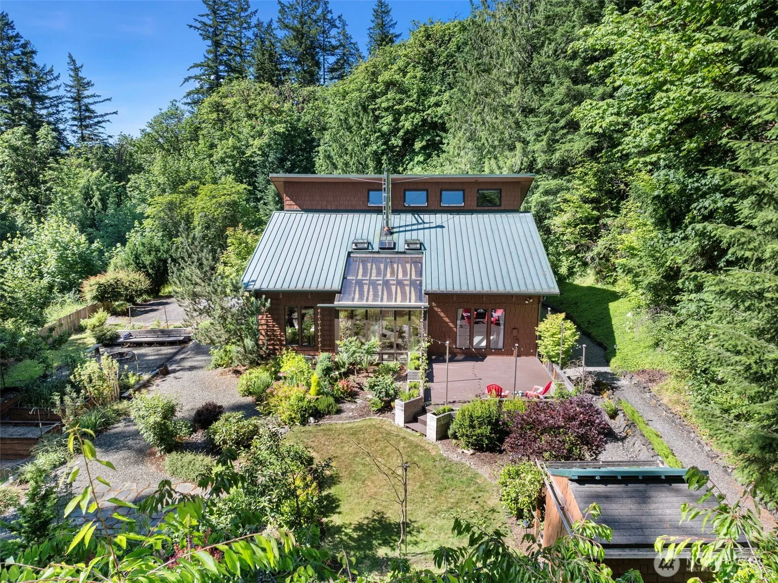 Welcome to Your Private Retreat in Quilcene! This secluded property offers over 9 acres on 2 tax parcels. The Main Home & Cottage are tucked away amidst a forest of evergreens, lush gardens, fruit trees, stone patios, a spacious deck, raised beds & large campfire area perfect for s’mores & sunsets. Rustic charm abounds in the main home: vaulted cedar ceilings, wood-burning fireplace, natural light from the windows & Solarium with French Doors to the living room & library, plus Primary & 3/4 bath on the main floor & 3 rooms with full bath upstairs! The Detached Studio Custom Cottage w/ 3/4 bath is ideal for guests & relaxation. The 2-car garage & large driveway provide ample parking. Near the Olympics, Hood Canal, schools & amenities!