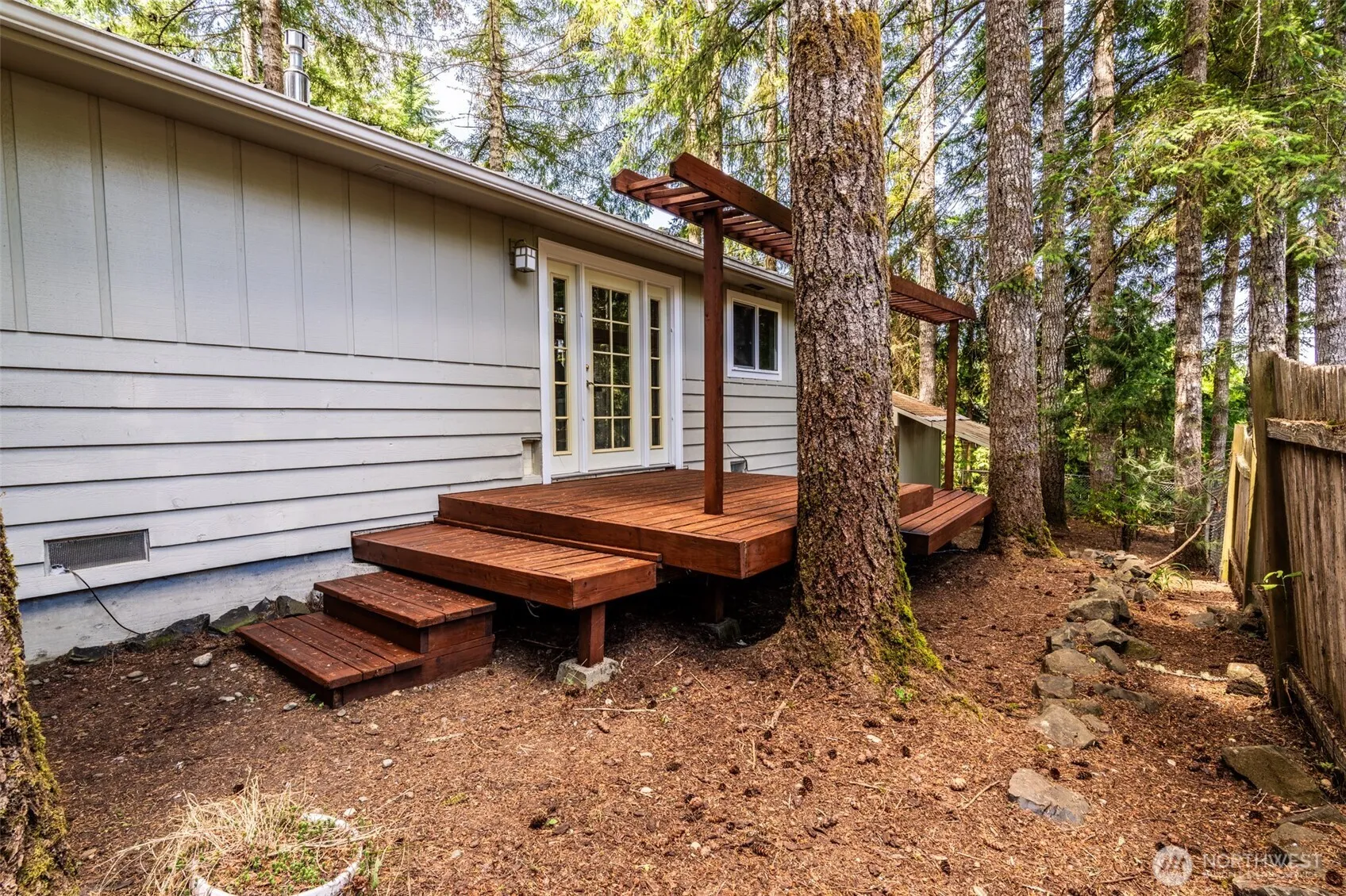 Bright and well built home in gated community with private lake access. This cute home is a perfect starter home in a safe, gated community, would be a fantastic rental or vacation getaway. Located in a growing area with access to the Puget Sound and Olympic Peninsula. Wood siding, metal roof, updated windows, and a propane powered gas stove which can heat the whole house make for cozy PNW evenings. Lake with community beach, park and club house are amazing; endless summer days; a dream for everyone! Large wooded lot has lots of privacy and potential; home features generous decks on both front and back.