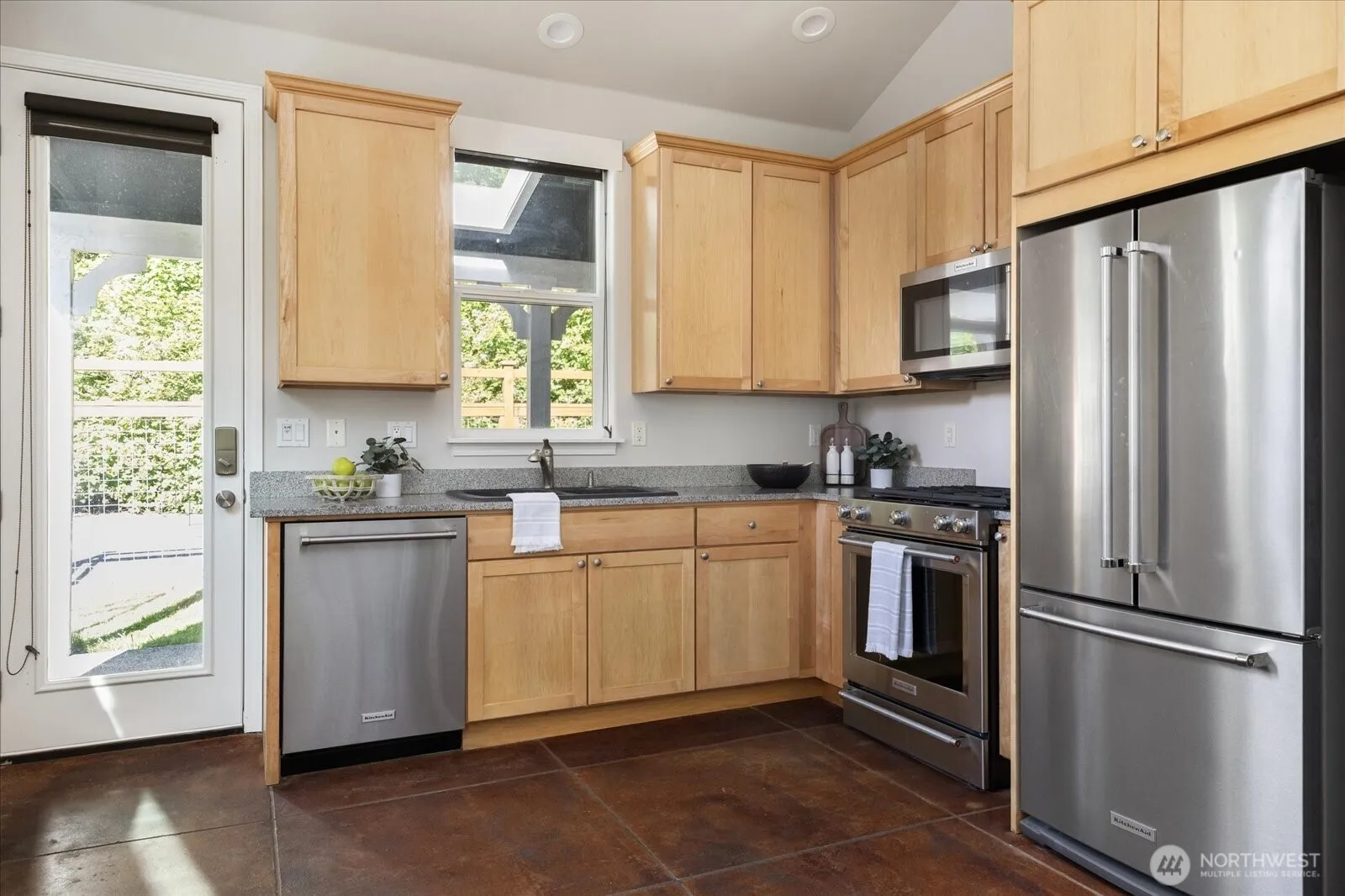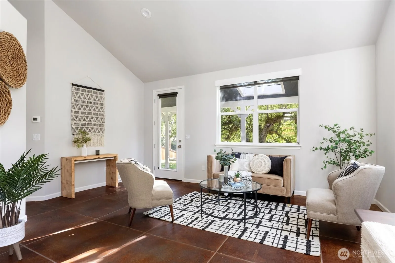 Discover an exceptional opportunity for first-time buyers or anyone desiring a convenient & captivating weekend getaway. Vaulted ceilings & abundant skylights fill the open living spaces with natural light. Experience comfortable living with efficient in-floor heated, custom-stained concrete floors throughout. Eat-in kitchen, featuring granite countertops, flows seamlessly, perfect for everyday meals & entertaining. Step out onto the inviting covered porch to savor quiet mornings or vibrant sunsets. Detached two-car garage offers ample space for vehicles or hobbies. Embrace the coastal lifestyle with community access to a private beach and a refreshing pool. This home is a captivating blend of cozy comfort & island living.