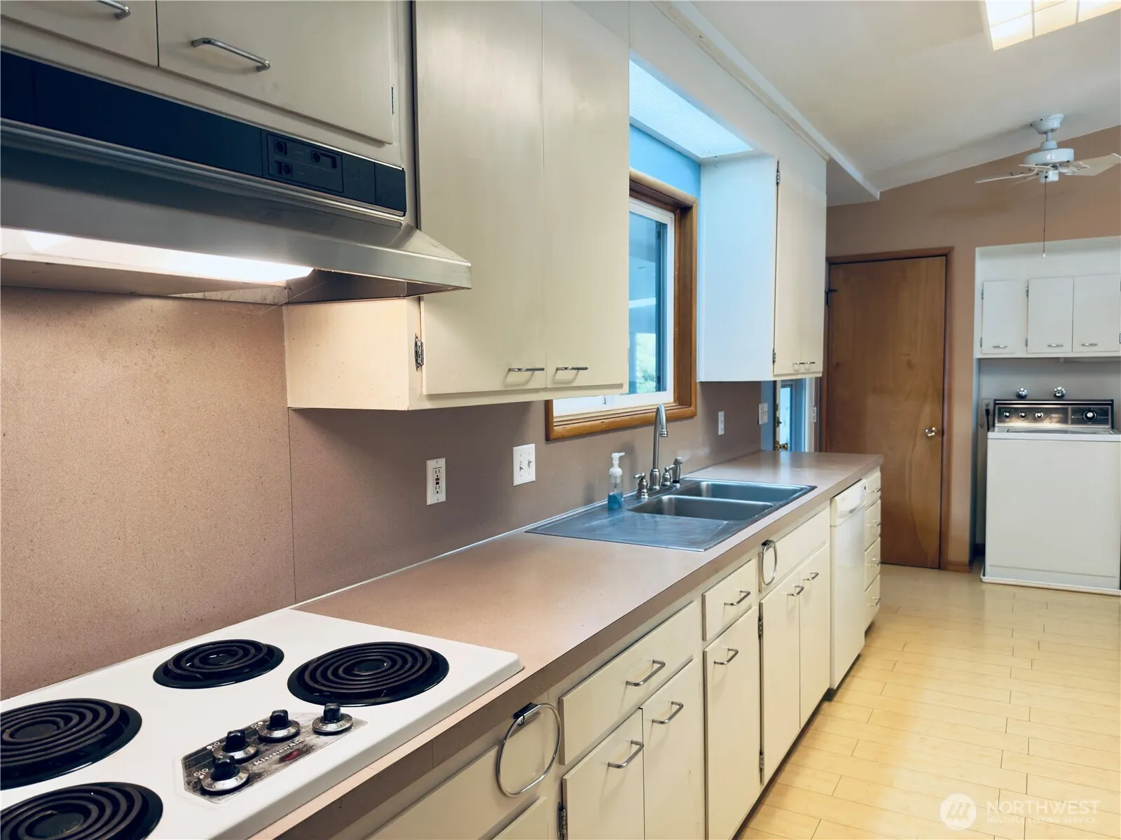 One level living with wonderful vaulted ceilings throughout the home. 3 bedroom, 1.75 bath home conveniently located. Newly refinished hardwood floors in bedrooms and living room. Primary bedroom with ensuite. Mini-split provides heat and a/c in living area. Covered patio and private fenced backyard with an established apple tree. Appliances to stay with the home. Seperate garage with storage and an outbuilding too.