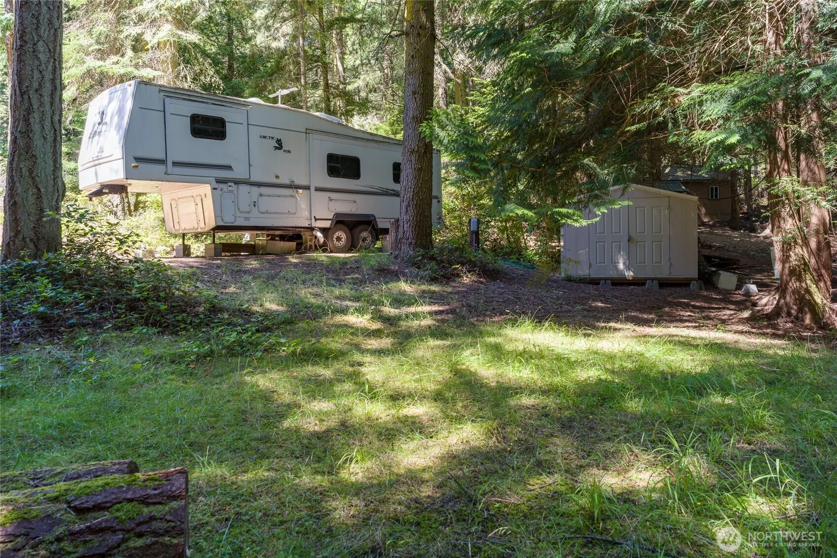 SUNNY BUILDING LOT close to the ferry. Just bring your plans. Installed community water, power and 2 bedroom gravity septic system. Rock Island fiber is at the road edge. Flat, cleared building site. Artic Fox 5th wheel included in sale. Gives you a place to hang out while you decide what to do. Back two-thirds of the lot is wooded which gives you a little of nature to enjoy too. This lot is priced to sell.
