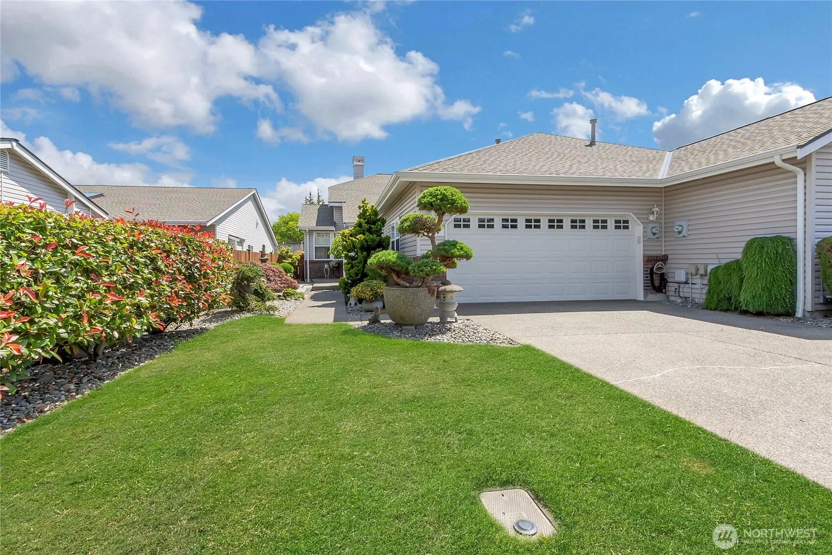 Pristine gated community of Sheffield Place for 55+. Zero lot line. Fee-simple ownership. Duplex-style Home. Quality craftsmanship featuring Bright kitchen with eating area and pantry. Large Primary Suite w/oversized walk-in closet, luxurious 5 pc bath w/soaking tub. Spacious Living room, cathedral ceilings, gas fireplace. Den/Office. Three Sola-Tubes for natural lighting. Enjoy A/C, skylights and private patio in fully fenced yard. Relax and enjoy low maintenance living at its finest. New Roof and Skylights in 2024. Sprinkler system front and back. HOA Dues cover sprinkler system, Mowing, edging, gated entrance and relaxing pond in the neighborhood. Walking path. Easy access to Fife, Parks, I-5. Centrally located between Seattle/Tacoma.