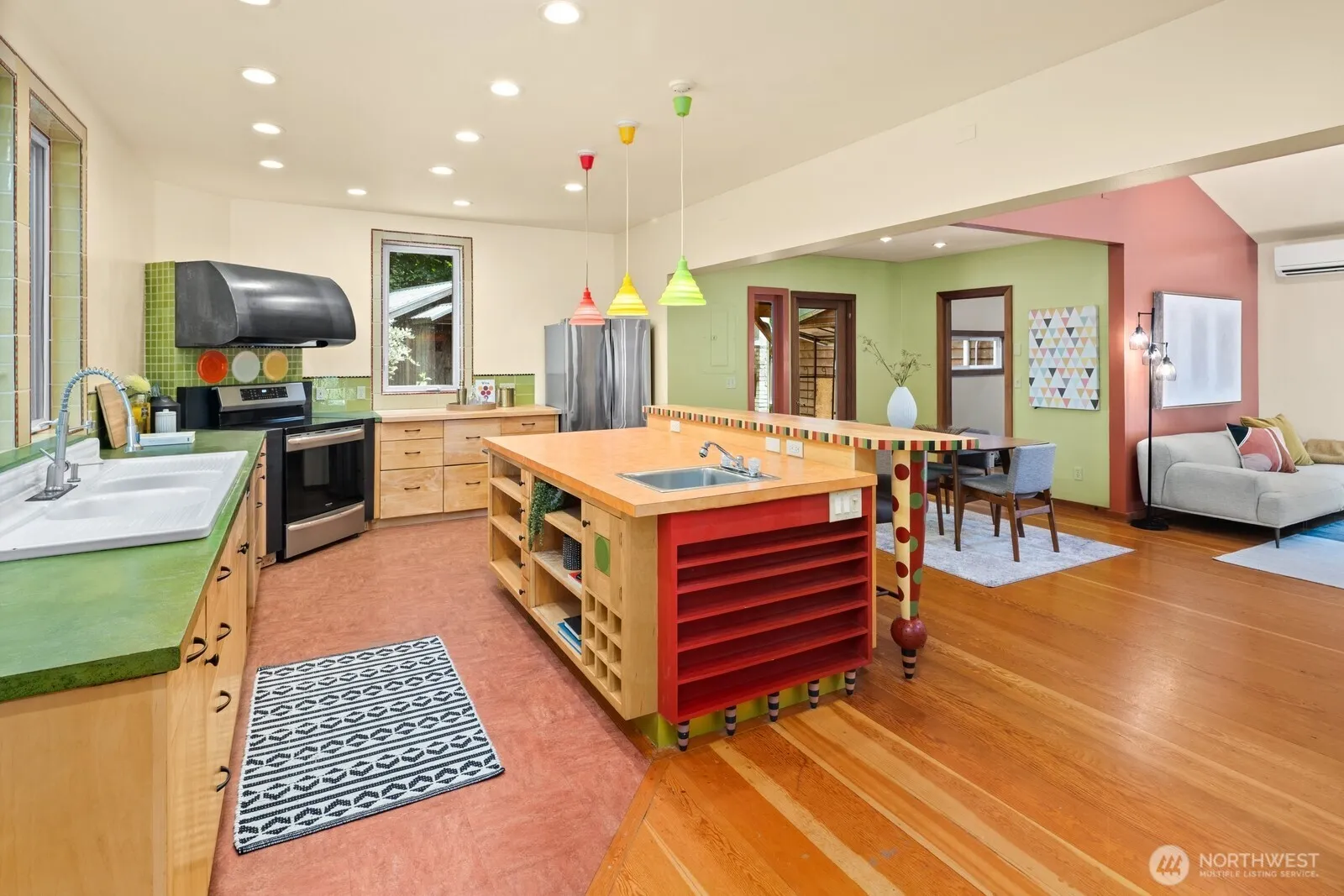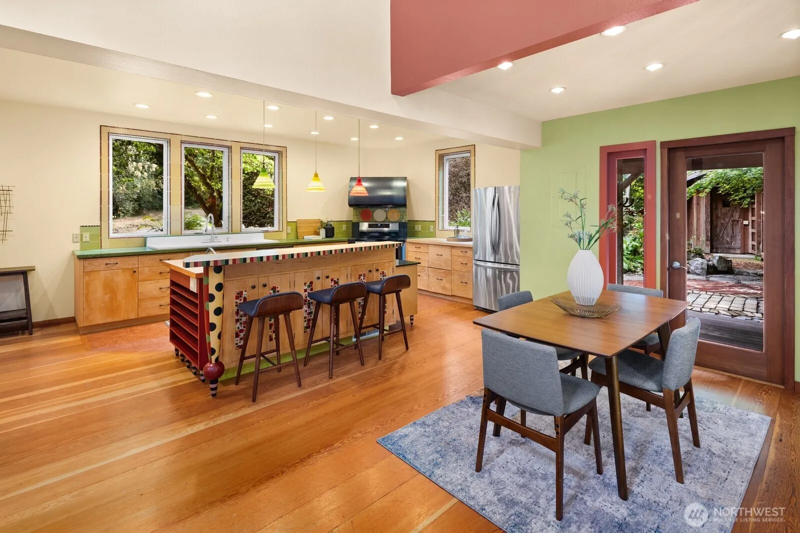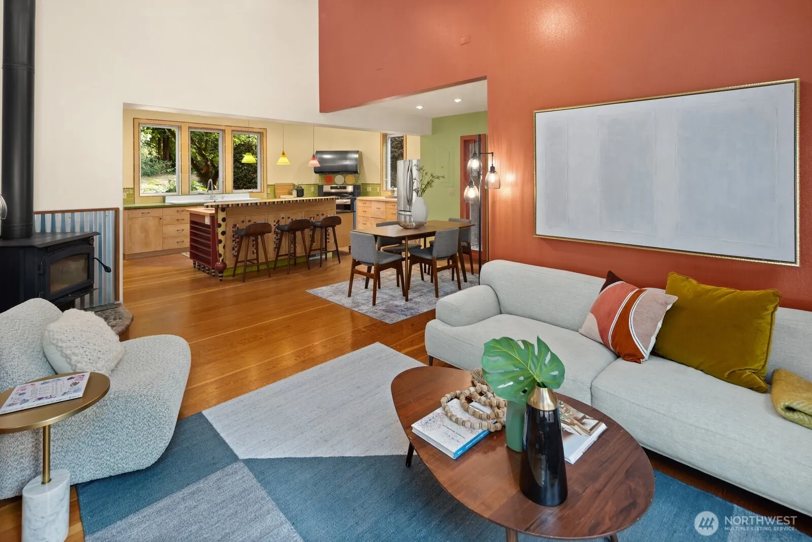 South Whidbey gem on wooded 4.5-acres. Artistically designed home w/ 2 beds, 1.75 baths. One-of-a-kind kitchen, dining area opens to a pizza oven patio, cozy living room w/ wood stove leading to large deck. Primary bedroom w/ ensuite bath & French doors to the deck overlooking the serene landscape. Mini-splits. Upstairs spacious & bright bedroom w/ hidden nook & small bonus room w/ view of the fields. Additional 500 SF living space w/ loft has potential for a private suite attached to the 2 car garage. Down the drive find a 2,500+ SF plumbed & powered workshop, plus a 380 SF powered & heated studio building awaiting your creative endeavors. Mature fruit trees. Just 12 minutes from the ferry, offering space to bring your dreams to life.