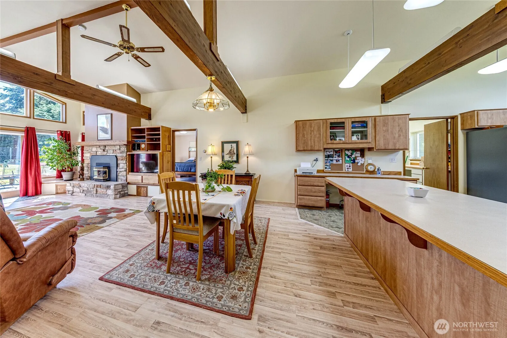 Beautifully Landscaped 2.77 Acres w/ Mountain Views & Orchard Don’t miss this 3 bed, 2 bath, 1,956 sq. ft. home with stunning mountain views and a wrap-around asphalt driveway. Open great room with propane fireplace and oversized kitchen perfect for entertaining. Spacious primary suite features scenic views and a large bathroom. Huge utility room + separate pantry. Enjoy the outdoors with an expansive back deck, greenhouse, and mature orchard featuring peaches, apples, plums, pears, cherries and more. Includes 864 sq. ft., 3-bay shop w/ 288 sq. ft. attached carport, 2-car attached garage, and irrigation. Private and peaceful setting — a rare find!