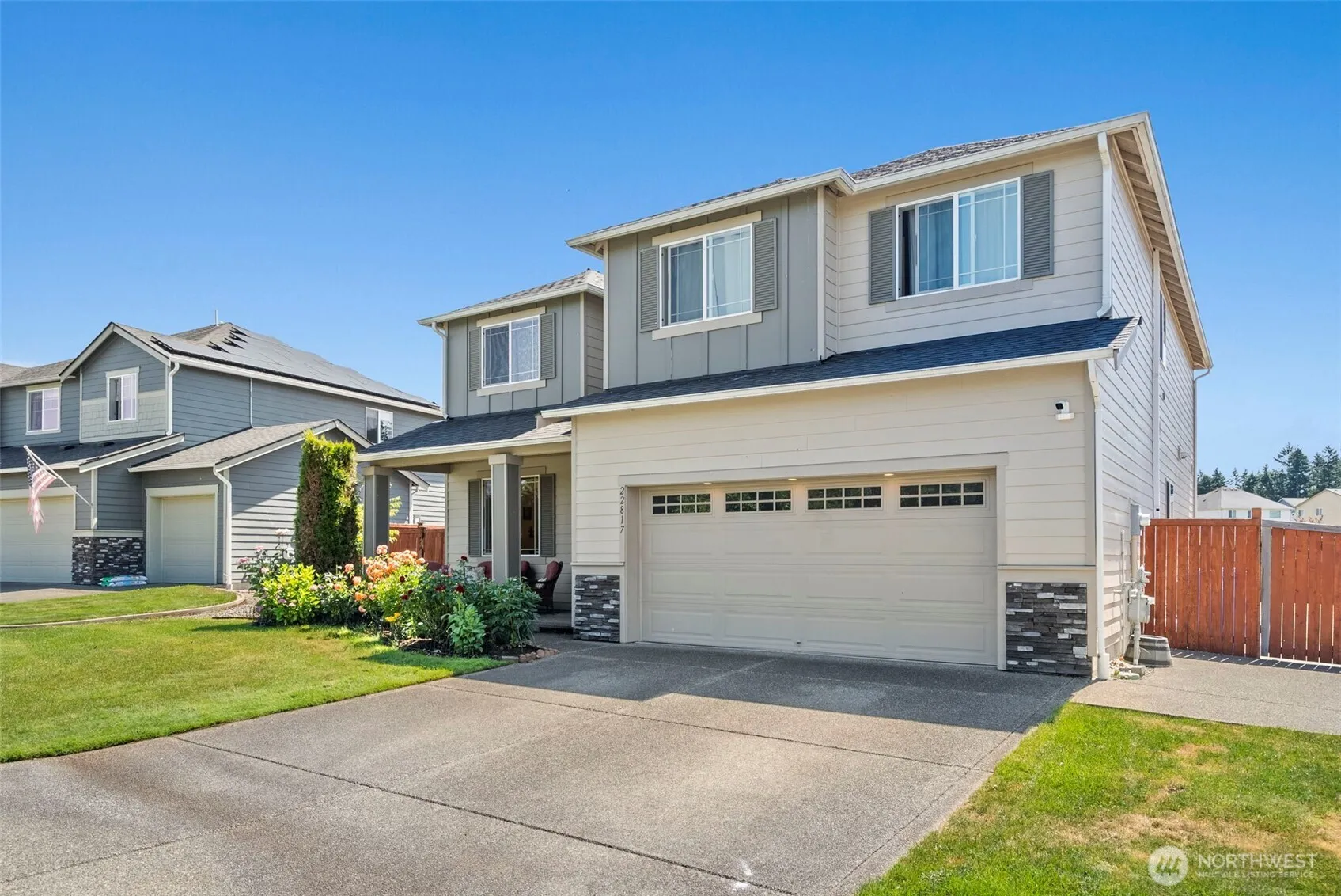 Seller offering $7,500 buyer credit at closing—use for closing costs, rate buy-down, or updates! Expansive 5BD/3.5BA home with two private en-suites. Space for living, multi-gen living or guests. Remodeled chef’s kitchen features quartz counters, oversized island, and designer finishes. Soaring ceilings, multiple living areas, large bonus room, and spacious primary retreat upstairs. Fully fenced yard with covered patio, gazebo, and parking for RV, boat, or toys. Over 1/3 acre across from amazing park in gated community. Close to JBLM, schools, shopping, hospitals, and recreation. Check out the price per square foot-exceptional value! This is the home for you. Welcome Home!