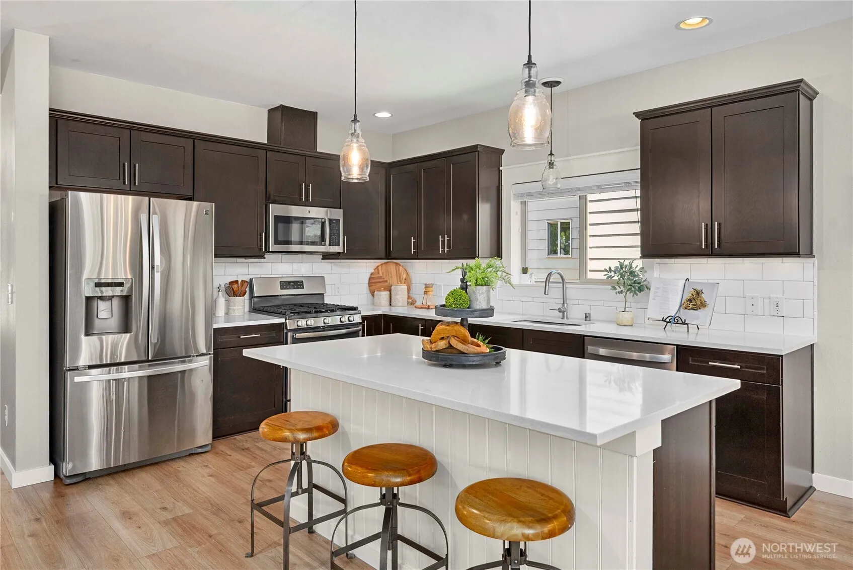 Welcome to this beautifully upgraded home in Perkins Prairie featuring brand new laminate hardwood flooring, newer paint & more custom details. The open-concept layout offers a bright kitchen with quartz counters, full-height backsplash, large island with storage, and stainless appliances included. The spacious dining area opens up to the great room which features a cozy gas fireplace with custom built-ins. Upstairs you’ll find a large loft, primary suite with walk-in closet and 5-piece bath, two additional bedrooms, full bath, and laundry with extra storage. Enjoy year-round comfort with A/C, a tankless water heater and a 2-car garage. Relax on the covered front porch or back deck overlooking a private, landscaped backyard. A must-see!
