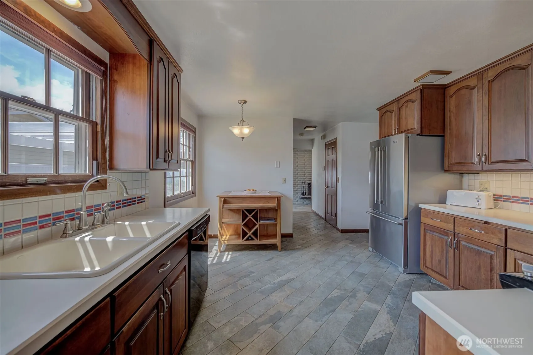 This charming and updated two-story home is near schools and the hospital. The backyard patio, and upper floor patio have a beautiful view of Saddlerock. Fresh exterior paint, to include the fencing. The spacious floor plan includes two living rooms, one with heated tile floors, perfect for relaxing evenings. The primary suite features an en-suite bathroom with heated floors for ultimate comfort. Recent updates include an updated electrical panel (5 years ago), and an updated HVAC system. The home offers great separation of space. The home is located on a corner lot, and has a two car garage.