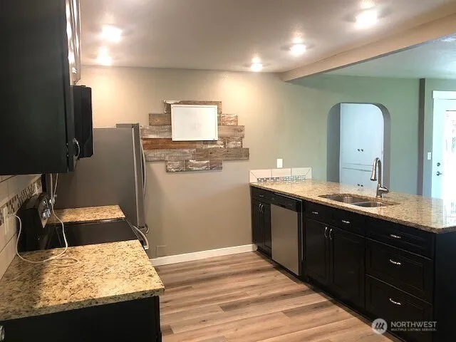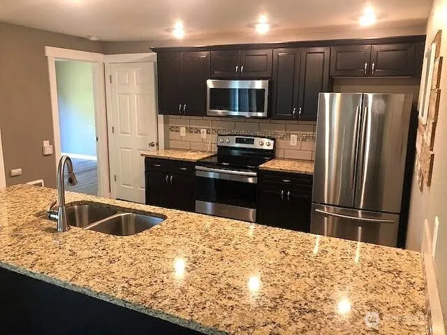 See this rare beauty! Updated farm home on 1 acre between Roy and Yelm. Close to a main street w/privacy at the end of the rd. This cozy, yet open and airy home has lots of light and offers 3 bdrms and 2ba. Kitchen boasts granite slab counter tops, tile backsplash, stainless steel appliances and is open to the living room. The living room is large and spacious with vaulted ceiling and rock fireplace surrounded by shelving. The primary bedroom suite has a large walk-in closet, new full bathroom and slider from the bedroom to your own deck. The two other bdrms are on the opposite side of the home w/another full bath. Outside are 3 sheds, 1 used as workshop-w/power, another used as a gym-w/power. A gazebo for entertaining w/sink (unplumbed).