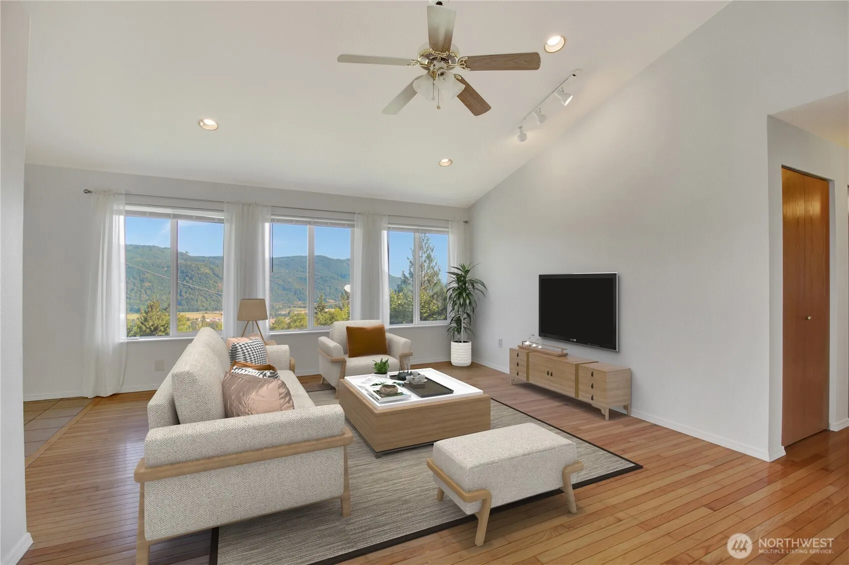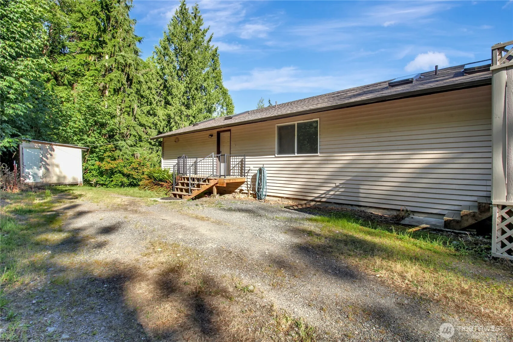 {VIEW, VIEW, VIEW} Perched above the Stilly Valley, the views will most certainly impress! One year old roof, new interior paint throughout & brand new carpet too! LR boasting hardwood floors, efficient mini split offers A/C, lots of windows for natural light. Enormous kitchen w/island, an abundance of cabinets/pantry & tiled flooring. Primary BR has slider to private deck, bath w/ walk in shower AND door to enclosed deck w/ hot tub for evening soaks & sunsets! Bonus room down w/wood stove for 2nd heat source ~ 4th BR and full bath. Extra storage on lower level too! Central vac, skylights, vaulted ceilings! Property has extra large 2 car gar., 2 outbuildings w/power, fruit trees, blueberries & deer fencing around yard. Very private!!!