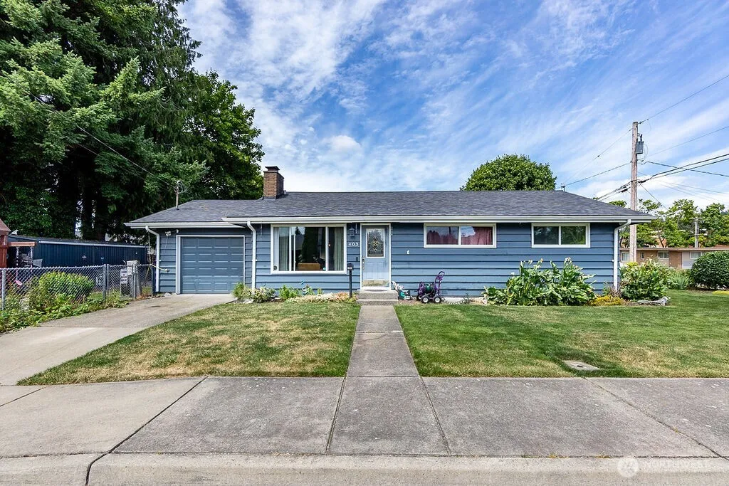 Come view this great rambler situated on a fenced corner lot in a convenient location. The living room features a large picture window w/ wood burning fireplace. The living room opens to the kitchen which has plenty of counter space, a large pantry & stainless steel appliances. The dining room has French doors w/ access to the fenced backyard. Hardwood floors throughout living room, dinning room & bedrooms. All the bedrooms include ceiling fans. Outside you will find a 20×12 outbuilding w/ a 20×10 carport & garden space. Newer roof and windows. Close to schools, I-5, Burlington Blvd & Hwy 20.