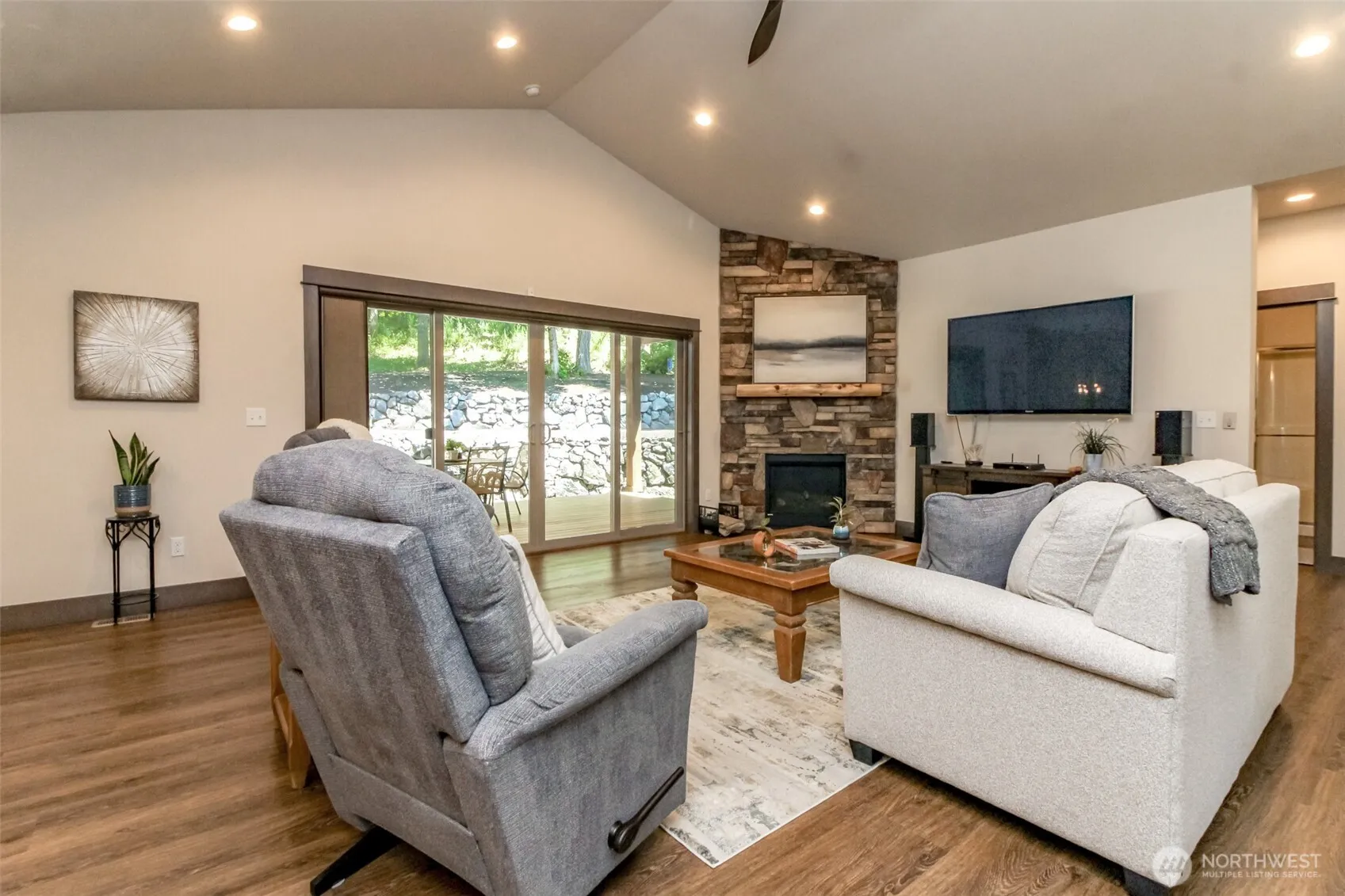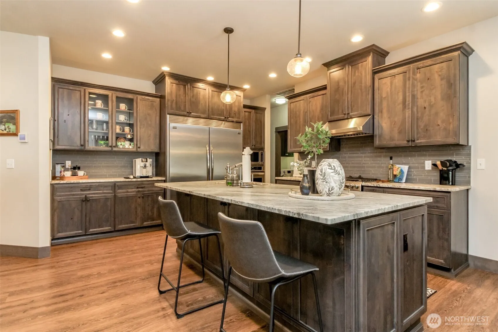 This nearly new, 2.4-acre custom rambler offers 3 beds & 3 baths in a private setting minutes to Gig Harbor & Hwy. 16, within walking distance to the waterfront. Enjoy outdoor living with two covered decks, BBQ space, and a meticulously landscaped yard with new rockery, sprinklers, all enveloped by mature trees for privacy. Useful oversized garage, walk-in pantry, oversized cabinets & vaulted ceilings. The gourmet kitchen boasts high-end finishes, leather-finished counters & engineered flooring. The primary suite features heated floors, huge walk-in closet, five-piece bath & deck access. Benefit from low energy bills thanks to high-eff. systems, appliances, & heat pump/AC. Walk or bike to the Olalla Market, waterfront, and wine tasting.