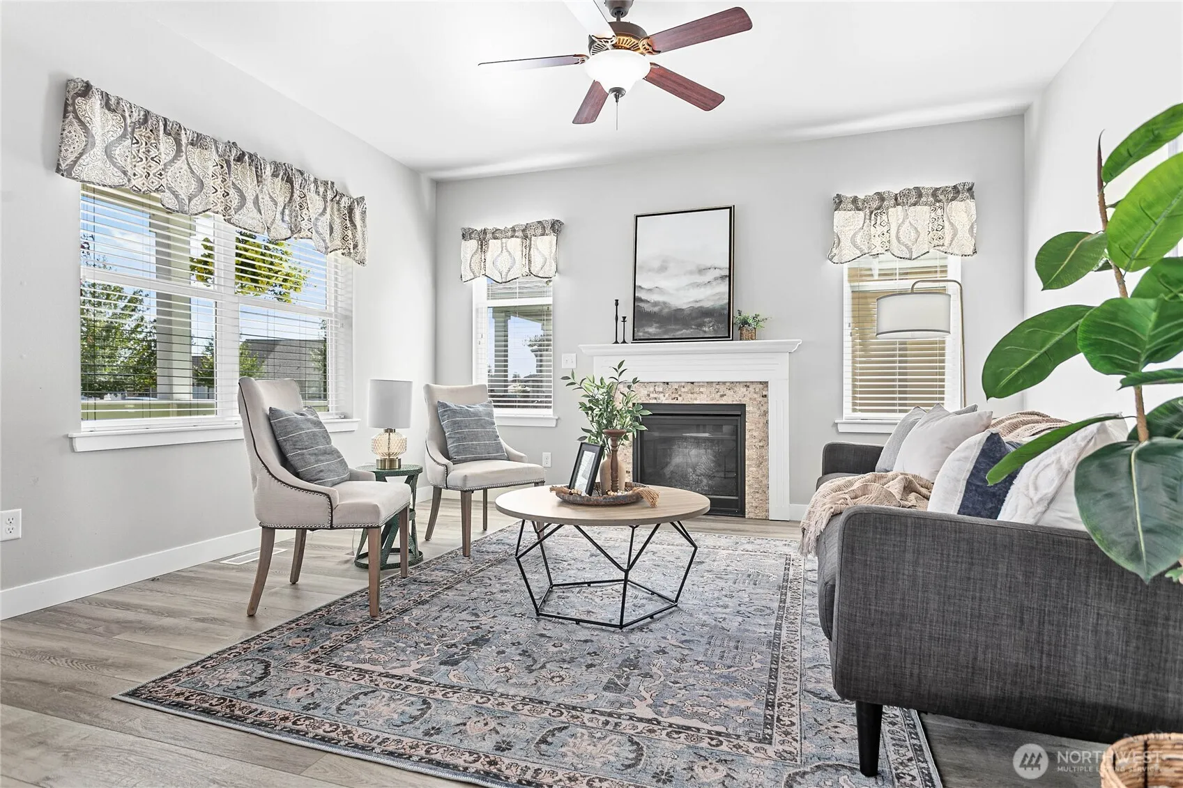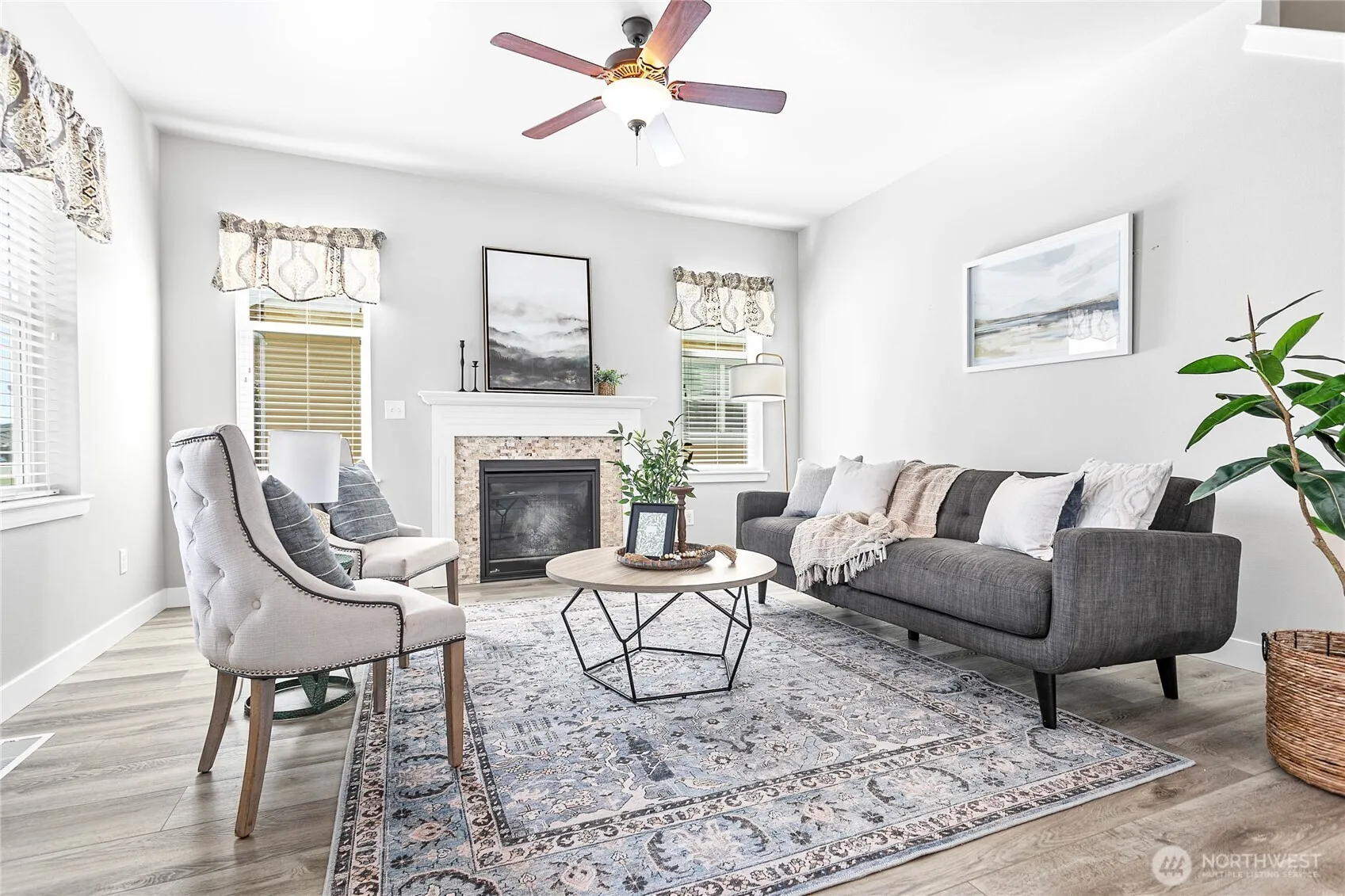 Move-in ready charming cottage in the North Prairie Cottage community with main-level living & HOA maintained yard. Welcoming covered front porch. Beautiful vinyl plank wood flooring throughout. Open floor plan w/spacious living room, gas fireplace & large dining area. Kitchen has newer stainless-steel appliances, full tile backsplash & plenty of storage including walk-in pantry. Tucked in back of home, owner’s suite on main features full ensuite bath & walk-in closet. Large utility room w/closet just off garage entry. Easy to maintain fully fenced & private backyard. AC to cool off in the heat! Substantial reno done on entire home about a year ago. Owner willing to finance 5.75% rate w/20% DP.