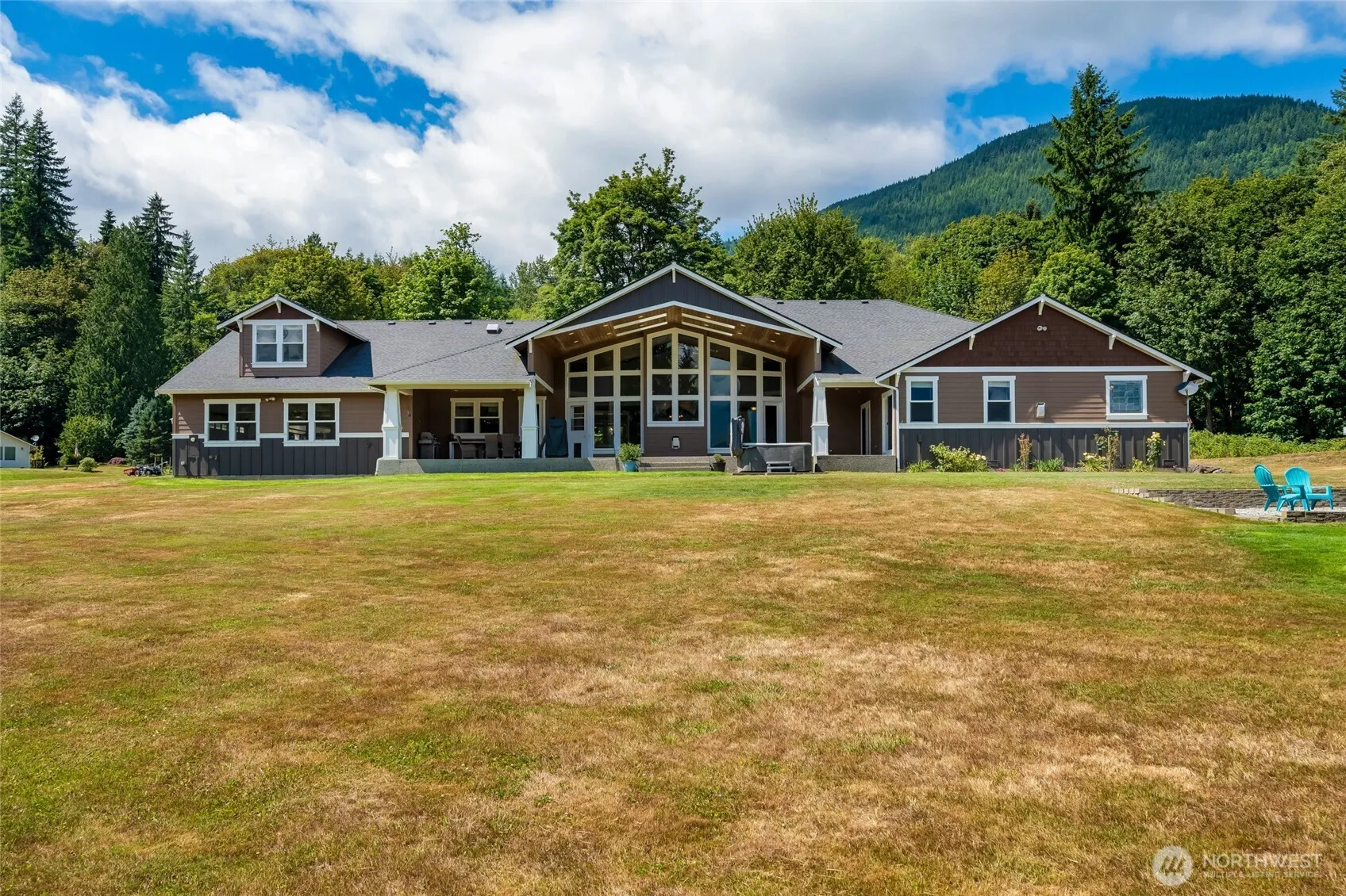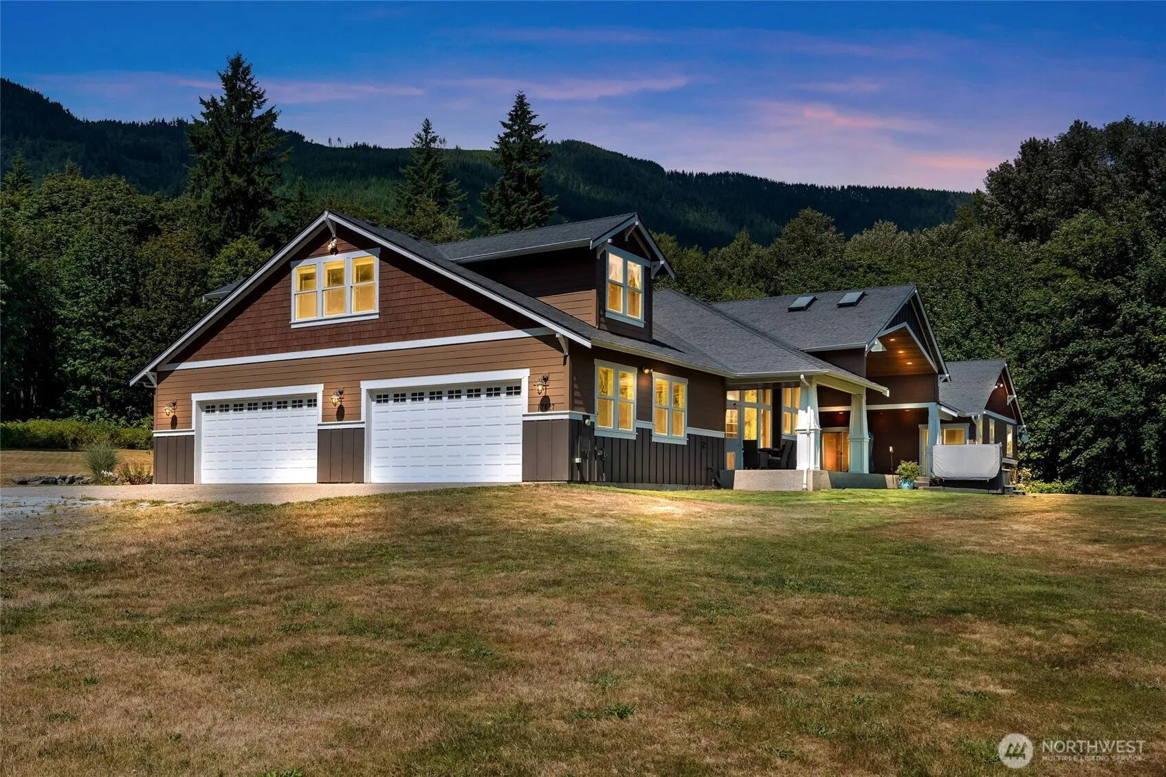 Breathtaking mountain views from this beautiful home on acreage. This stunning home is perfect for both everyday living and elegant entertaining. All bedrooms are conveniently located on the main floor, with a versatile bonus room upstairs, and a light-filled family room with floor-to-ceiling windows. The primary suite features a cozy fireplace and a luxurious 5-piece ensuite bath. Indulge in the spa-like experience with heated floors, a clawfoot soaking tub, and high-end finishes throughout. Gourmet kitchen features granite slab counters, a Sub-Zero refrigerator Wolf gas range, and a butler’s pantry. Huge 4-car garage with 9,000 lb lift and plenty of space to build your dream shop! 2023 roof, 2022 exterior paint, new heat pump, and more!