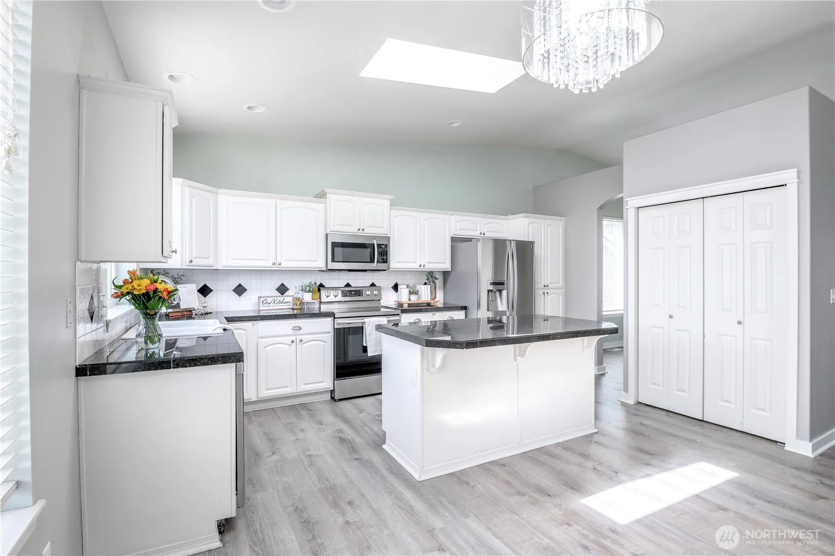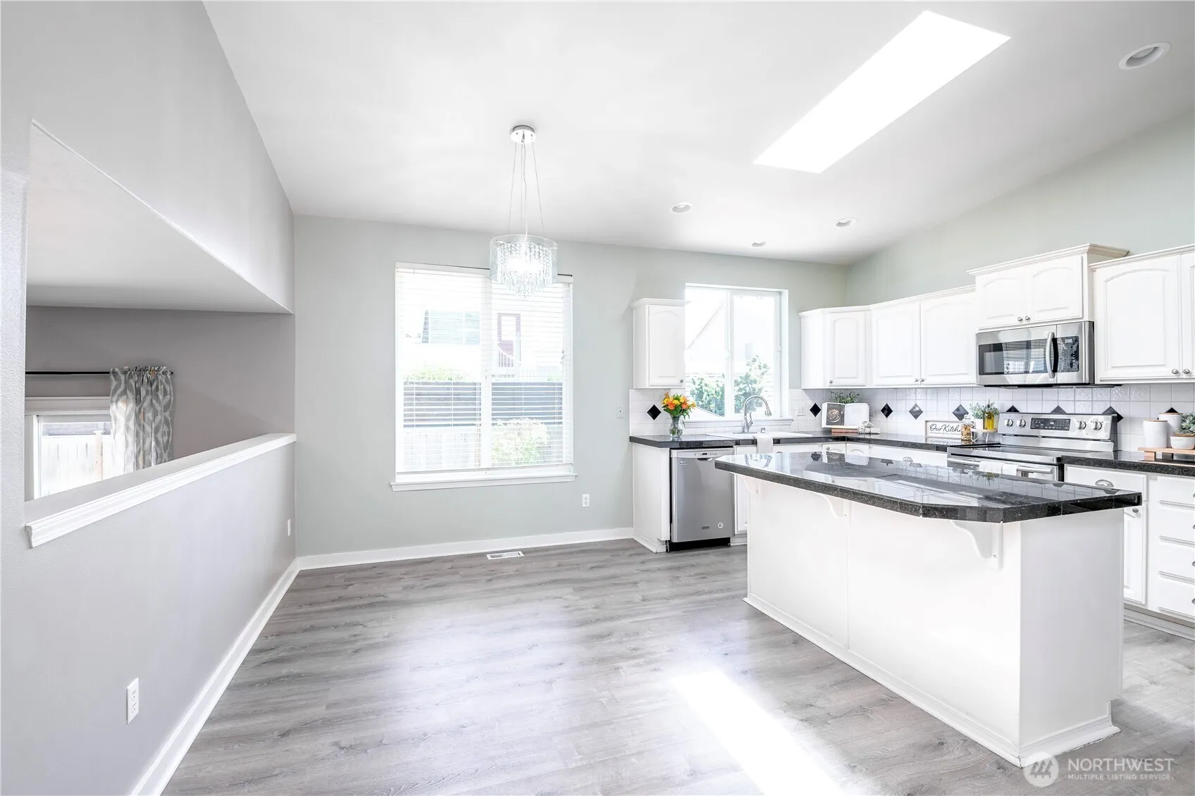 Spacious 4-bedroom, 2.5-bath home in the heart of Yelm featuring vaulted ceilings, updated LVP flooring, and tons of natural light! The kitchen shines with granite countertops, SS appliances, a large center island, & beautifully painted cabinetry. Enjoy a huge living room, dining area, and a versatile 4th bedroom on the lower level—perfect for an office or guest space. Newer carpet upstairs, interior paint and a high-efficiency A/C & furnace installed just a few years ago. Step outside to a covered backyard patio and space for relaxing, gardening, or entertaining. Located close to schools, parks, shopping, and just a short drive to JBLM, this well-maintained home blends comfort, space, and convenience!