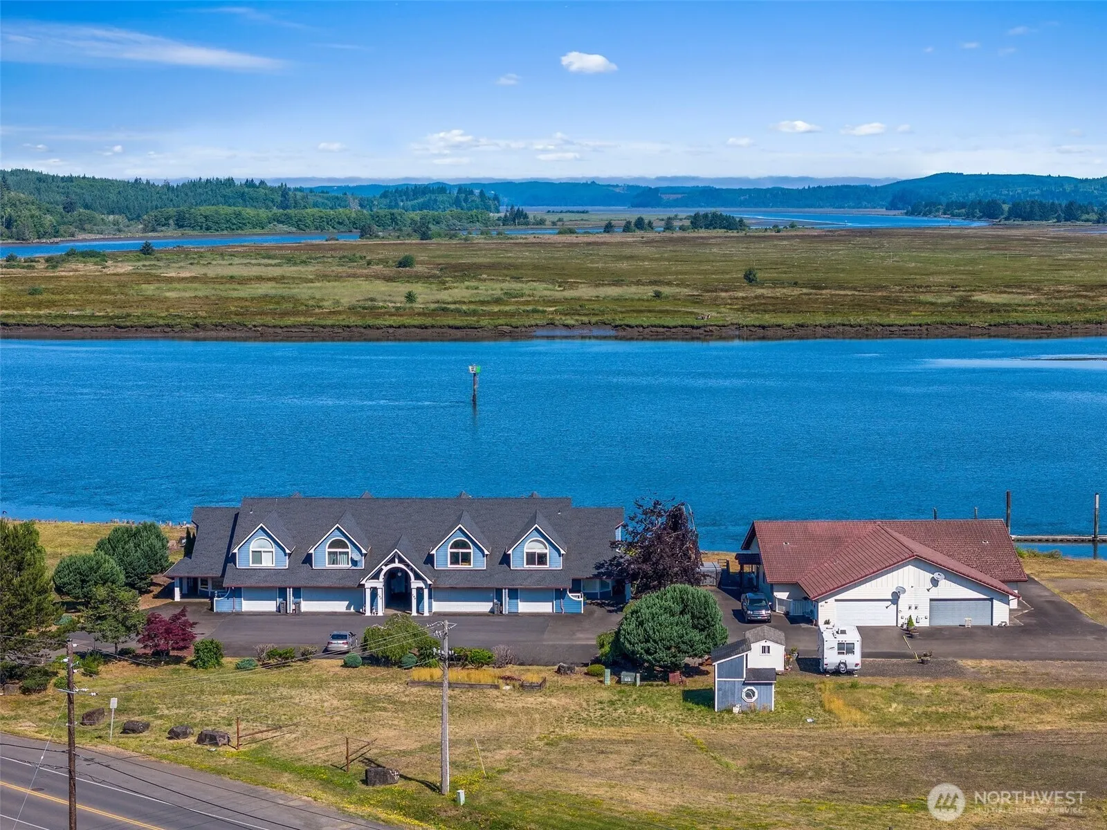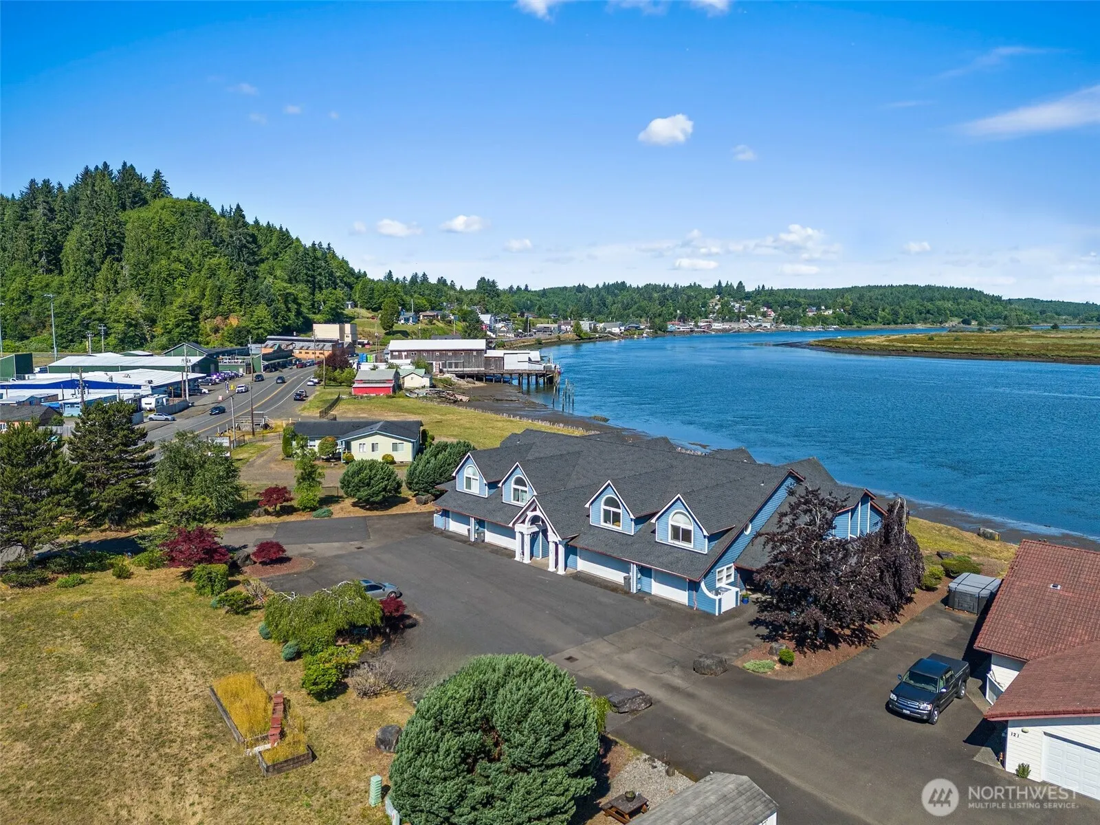 End-unit condo perched along the peaceful Willapa River, offering stunning water views and a serene lifestyle. The main level features a cozy living room with river views, a well-appointed kitchen, dining area, bedroom, bath, and an attached one-car garage for convenience. Upstairs, the spacious primary suite boasts sweeping river views, en suite and walk in closet. An additional oversized bedroom upstairs offers built in storage with counter space for crafting/hobbies or storage. A versatile loft provides the perfect space for a home office, reading nook, or additional lounge area. Enjoy nearby walking trails and the relaxing sound of the river just outside your condo—this is low-maintenance living in a picturesque waterfront setting.