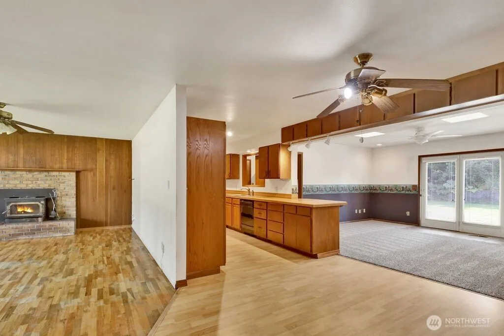 Solid 3 bedroom 1.75 baths, single-level home on a large ¼-acre lot in Lynden. Built in 1964, it features original oak hardwood floors in the living room, hallway, and bedrooms, plus new carpet in the family room and primary bedroom. Spacious laundry room and a workshop off the garage offer plenty of storage or hobby space. Mature landscaping provides privacy and room to garden or play. A great opportunity to bring your ideas and updates to make this home your own. Conveniently located near medical facilities, restaurants, and downtown Lynden.