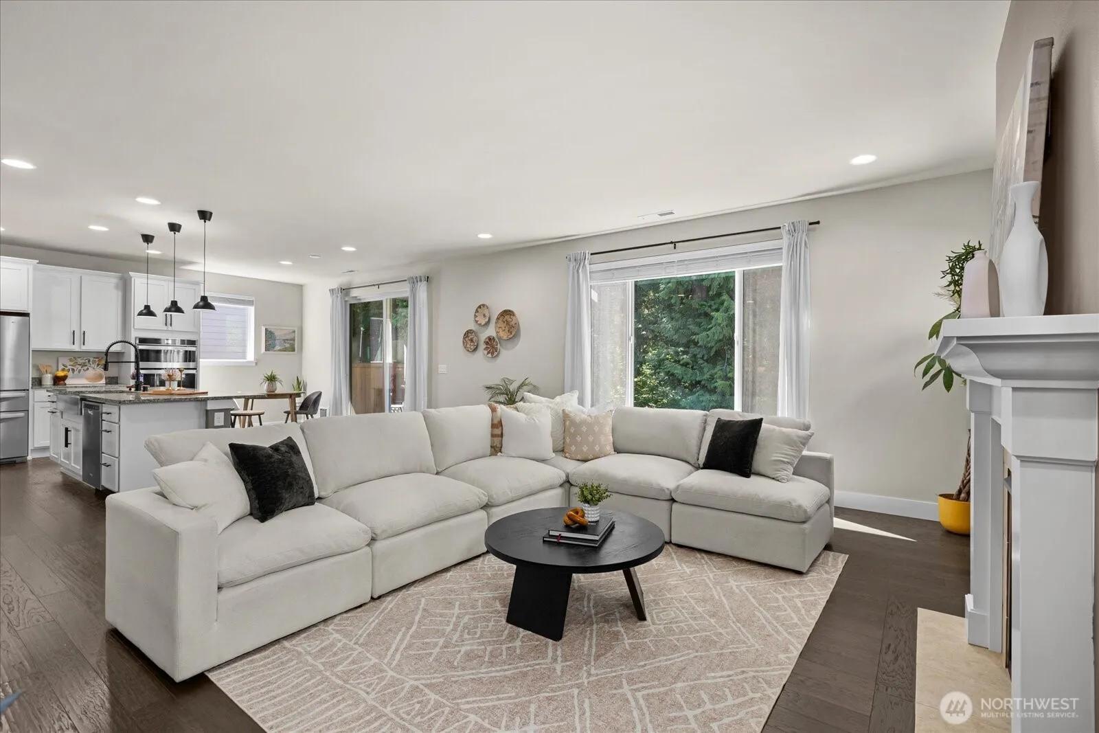 Welcome to Easton Cove! The ideal floorplan with 4 bedrooms, a large bonus room, and a main floor den. Soaring ceilings upon entry – The kitchen includes SS appliances, quartz counters, and walk-in pantry all opening to the dining and living room that flow to a covered patio. Enjoy the brand new paver patio with sunny southern exposure, perfect for lounging or hosting! The lush greenspace behind the home adds privacy and peace. Upstairs, the spacious primary suite shines with oversized windows and garden views—your tranquil retreat! Plus, 3 more bedrooms, full bath, laundry, and loft. Central A/C, and great updates throughout the home! Enjoy a huge park & trails across the street and unbeatable access to shopping and dining just mins away!