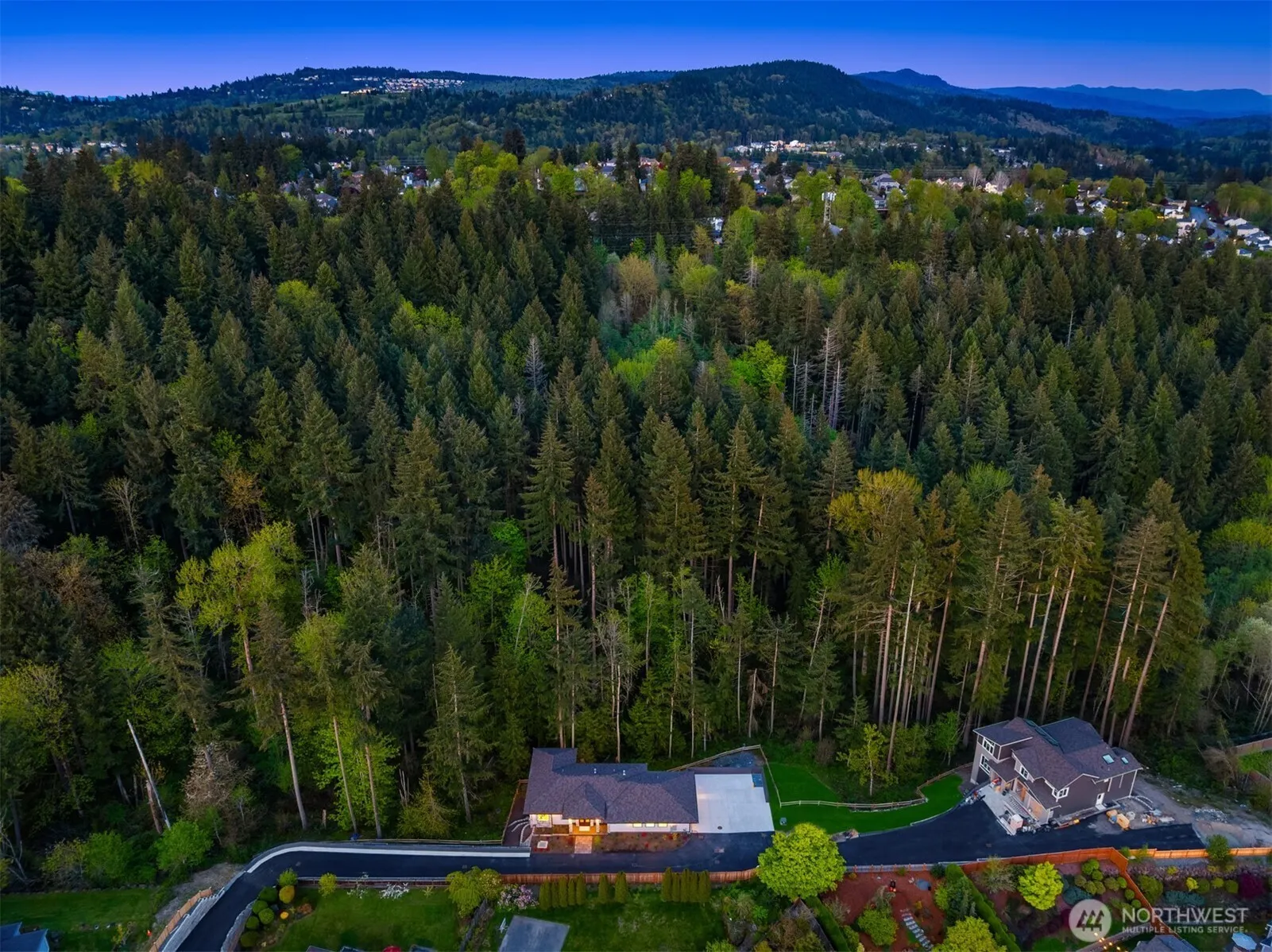 [WHERE DESIGN MEETS STILLNESS] Tucked at the end of a 350-foot private drive, this newly built rambler with an expansive, fully finished basement rests quietly on two wooded acres in the heart of Newcastle. Surrounded by evergreens and curated with intention, the home offers ADA-accessible main-level living, blending timeless design with long-term ease. Unapologetically positioned with grace and confidence, a wall of windows anchors the seamless indoor-outdoor flow—inviting the landscape into daily life. Wide hallways, oversized custom doors, and generous natural light evoke a grounded sense of Pacific Northwest grandeur. Quietly luxurious, deeply livable, and beautifully balanced. A place where design whispers and nature holds the rhythm.