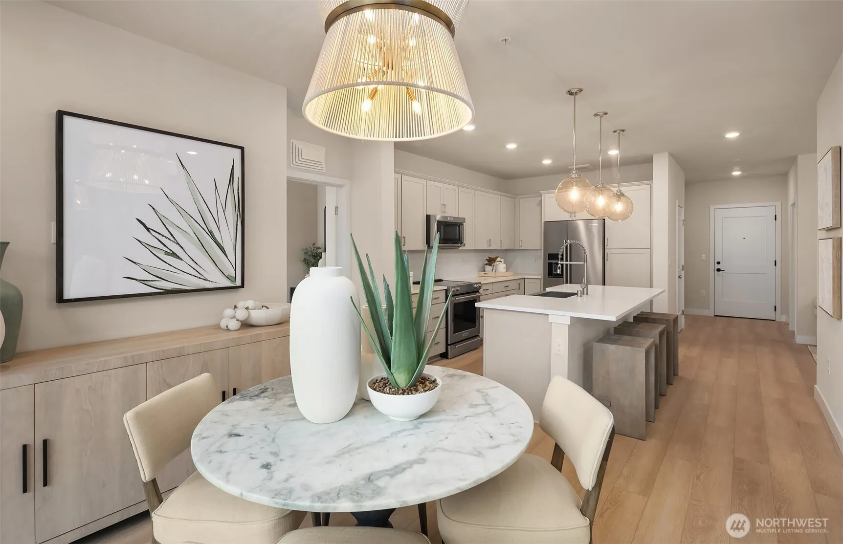 CLOSING COST & LOW-RATE INCENTIVE WITH PREFERRED LENDER! The Clarkston offers 1,332 sq ft with 2 bedrooms, 2 baths, plus dining room and office/den. Features include: Open concept living room, dining room, & kitchen with quartz island. Spacious primary suite with luxury bath & huge walk-in closet. 2nd bedroom & full 2nd bath. Oversized utility room. 9-ft Ceilings, big windows, abundant light, and private balcony. Inside a modern, secure, elevator building. Conveniently located in Shoreline with easy access to I-5 and light rail for fast commute downtown. Near shopping & restaurants. Furniture in photos available for purchase. Buyer must register their broker on the first visit by completing a Registration Card. Taxes not yet assessed.
