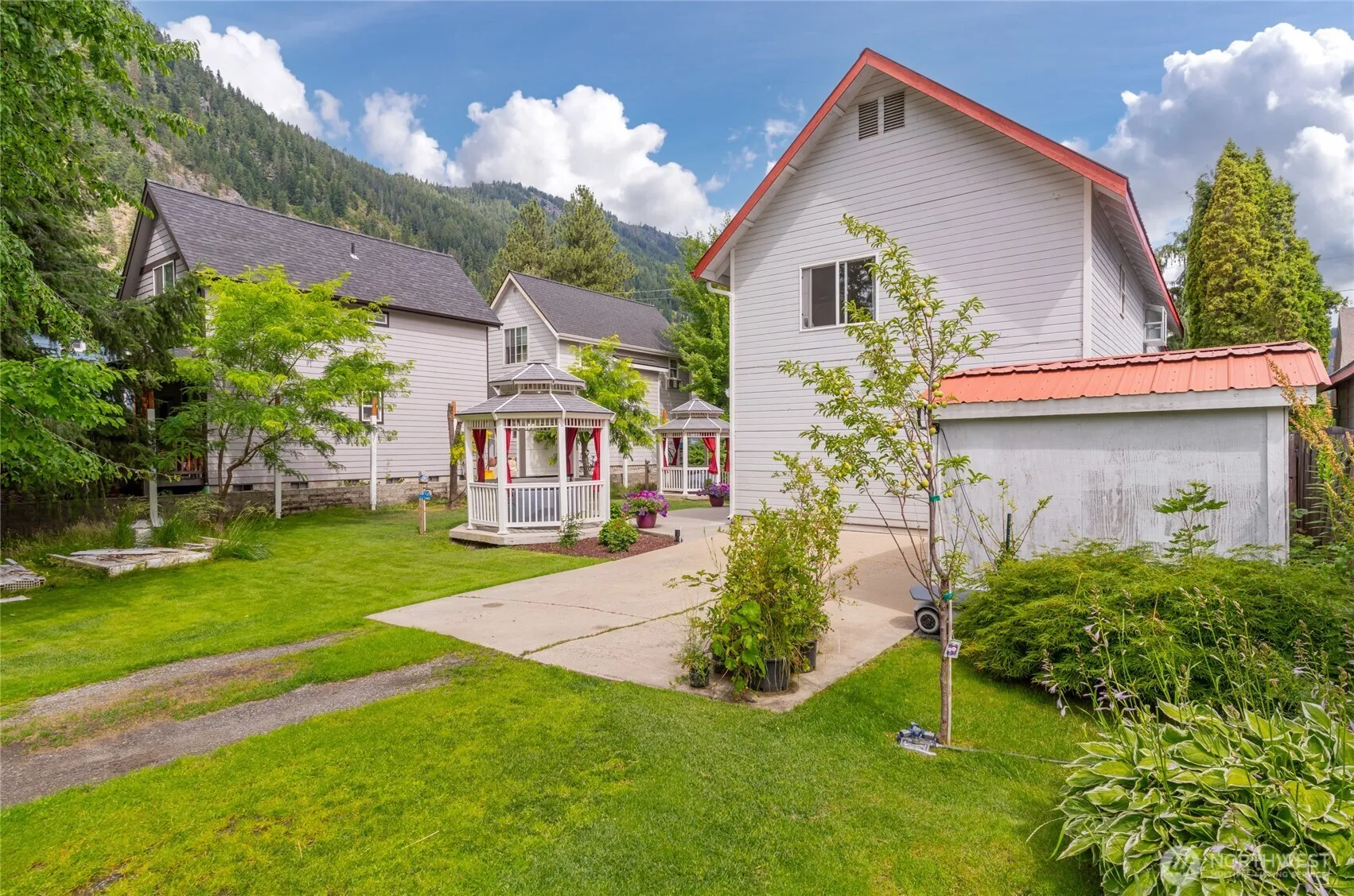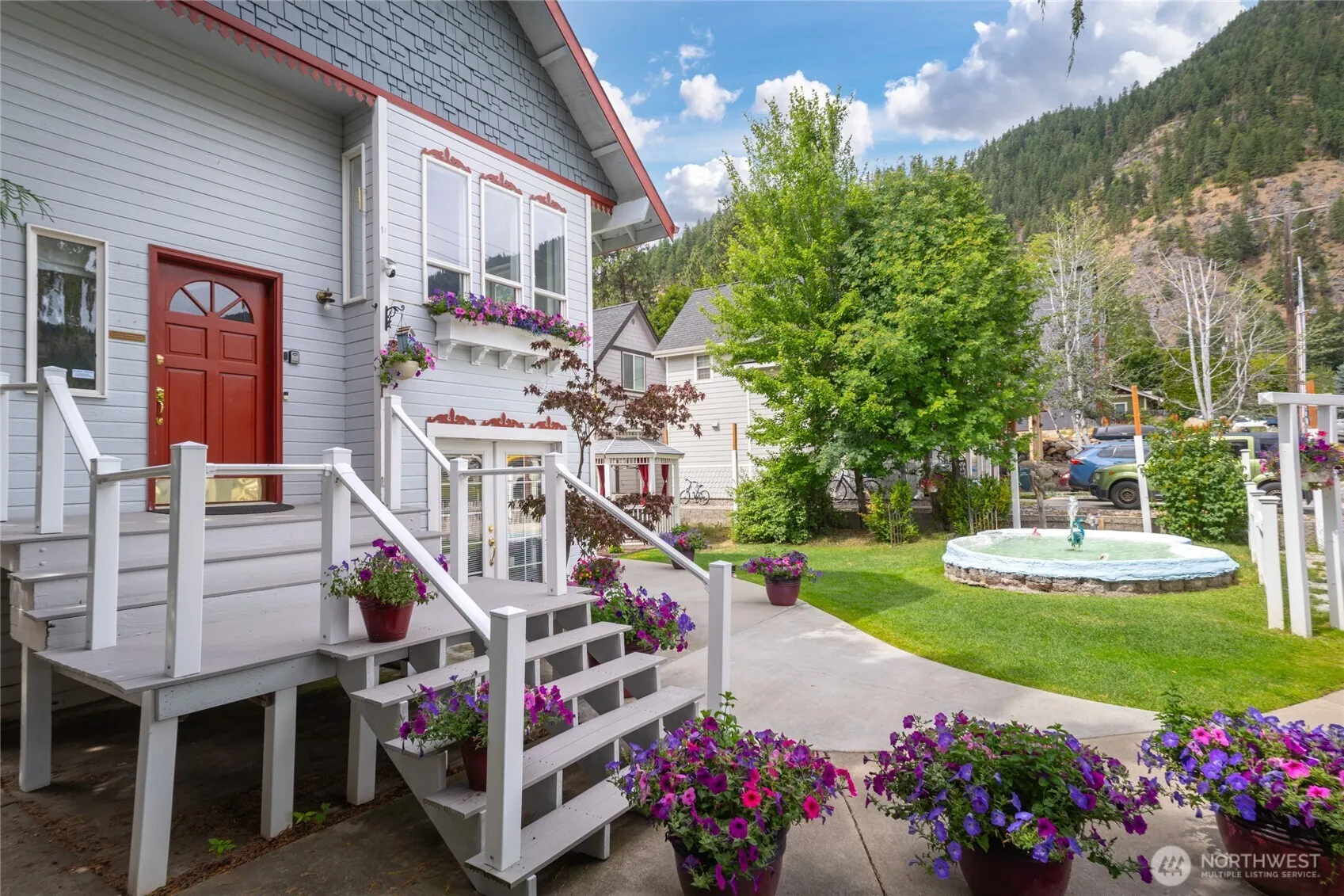 Welcome to your Bavarian dream retreat, nestled in the heart of Leavenworth, a world-renowned alpine village. Situated on a nice, quiet street. This property has a beautifully landscaped lot with sweeping views of the nearby mountains. Whether you’re seeking a cozy retreat or a smart investment, this home offers a rare opportunity. Living in the 2bed/2bath upper area is ideal. Features granite flooring in kitchen/bath(s). The lower level boasts multigenerational living, or potential 2-income-producing rentals. Easy mortgage. Gorgeous guest suites with French doors to the spectacular yard. Simple apartment conversions. Get creative with your commercial kitchen. Built-in sauna stays. The current nightly rental permit does not transfer.