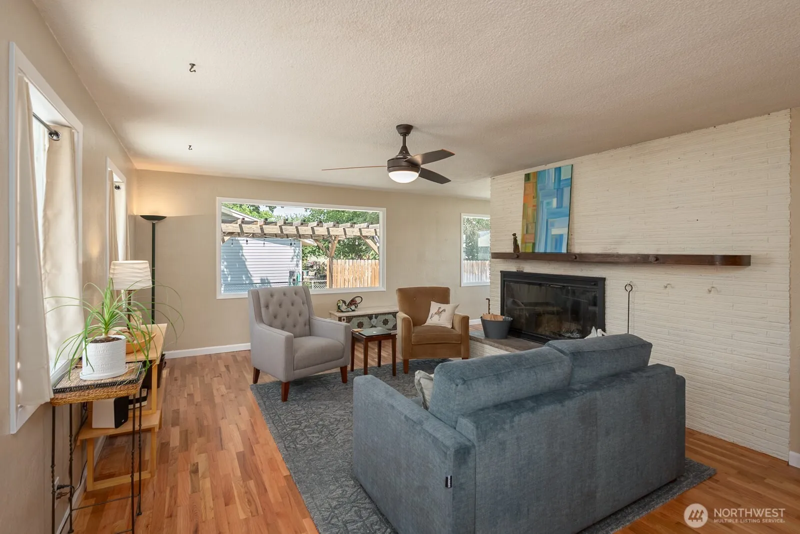 A partial lake view and a short jaunt to the lake with this charming property, new dutch doors on front and back and amazing refinished hardwood floors. Wonderful natural light. Lots up updates have been done including upgraded kitchen with all new appliances, central heat and air, new windows. The living room has a fireplace, 3 bedroom 1 bath has a huge backyard with garden space, pergola, and fully fenced property. Detached garage.