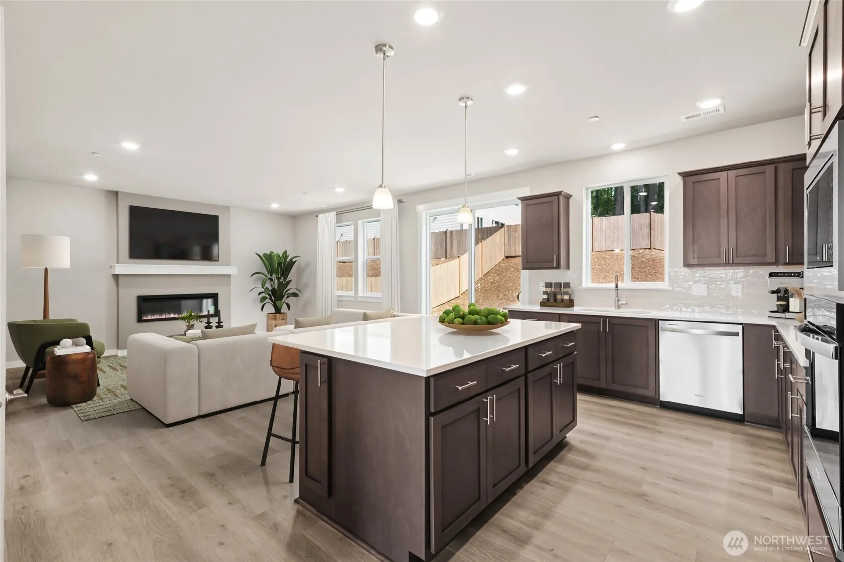 Wolf Point in Edgewood by D.R. Horton! Beautiful and conveniently located, surrounded by mature trees with highly appointed homes. A private homesite with long driveway, The Huntington floor plan has a gourmet kitchen with large island, pendant lights, gas cooking with eating space, pantry and stainless-steel appliances. Expansive great room with contemporary fireplace and private dining room. Upstairs hosts primary suite w/ full bath and walk-in closet. Three bedrooms plus a bonus room, laundry, and storage galore. Built-in Smart Home Features. Electric Vehicle charging in your 2-car garage! *Buyers must register their broker on first visit, including open houses.
